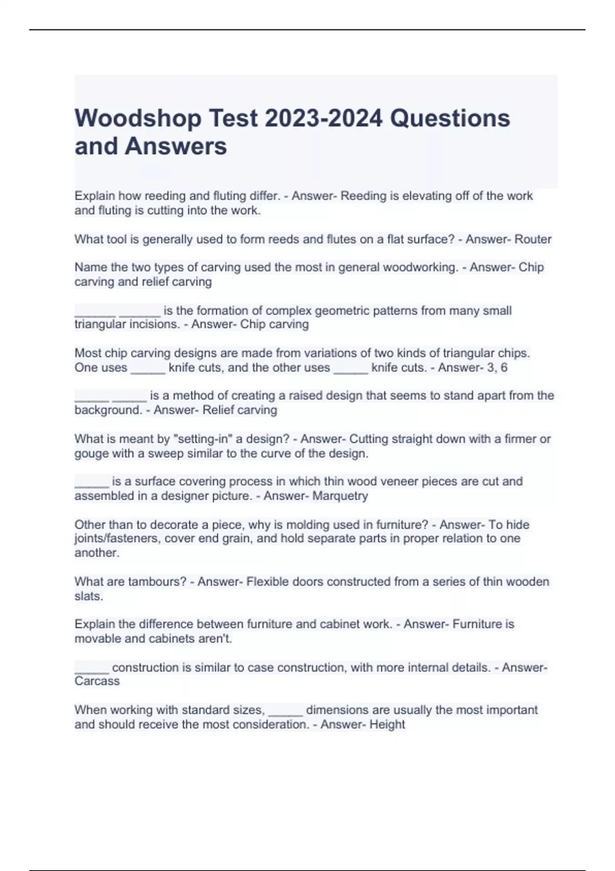 woodshop test questions and answers