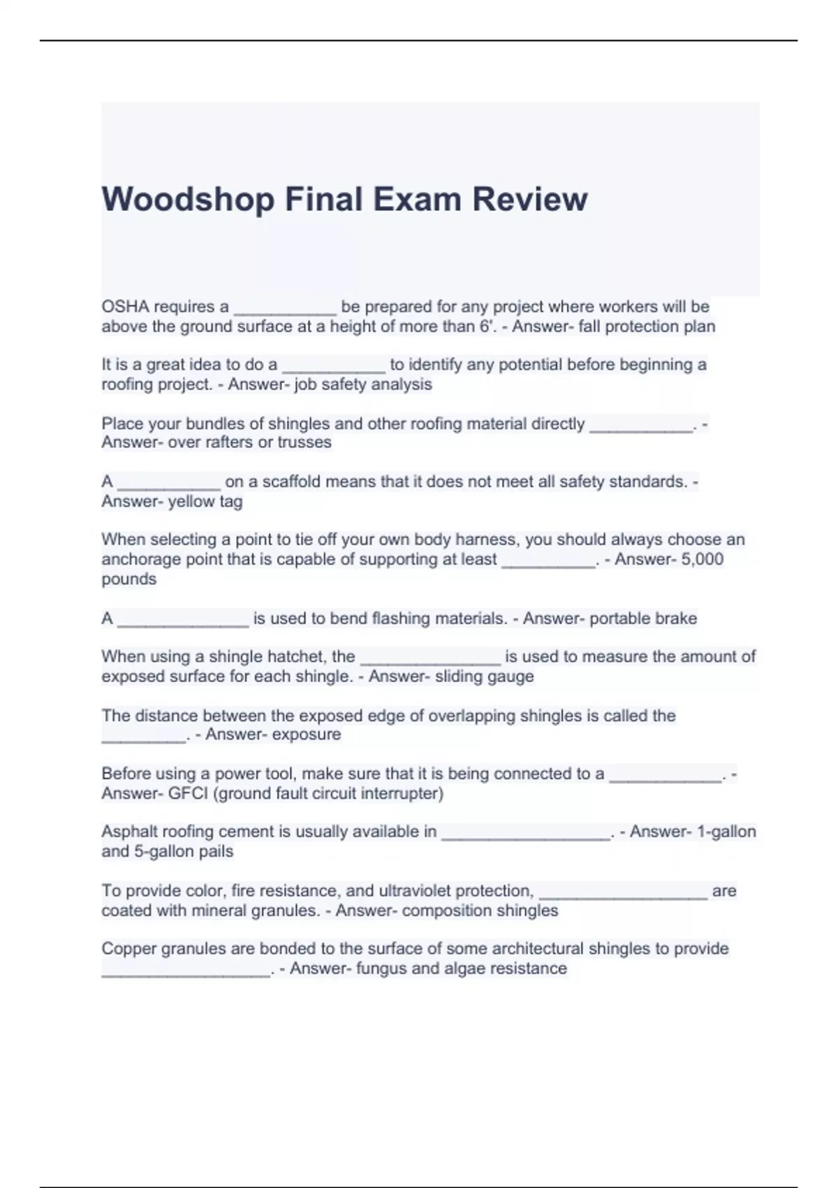 woodshop final exam review