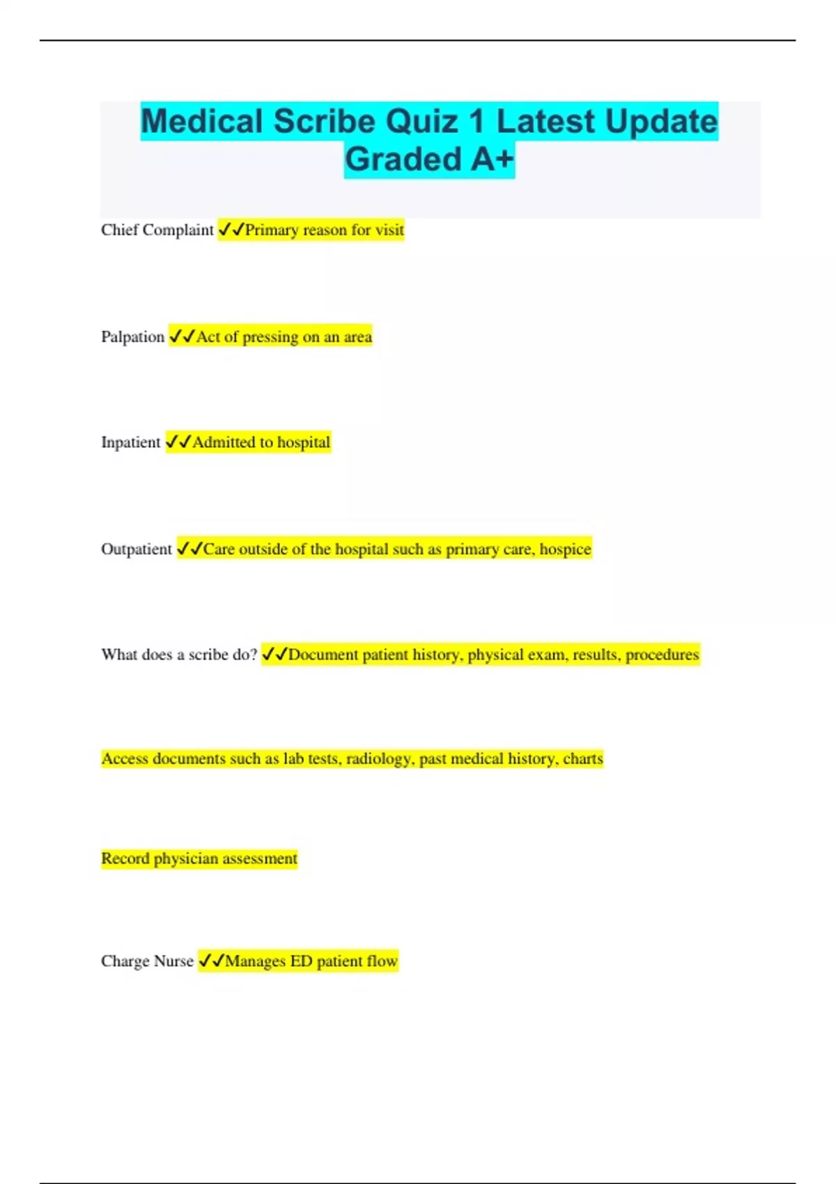 Medical Scribe Quiz 1 Latest Update Graded A+