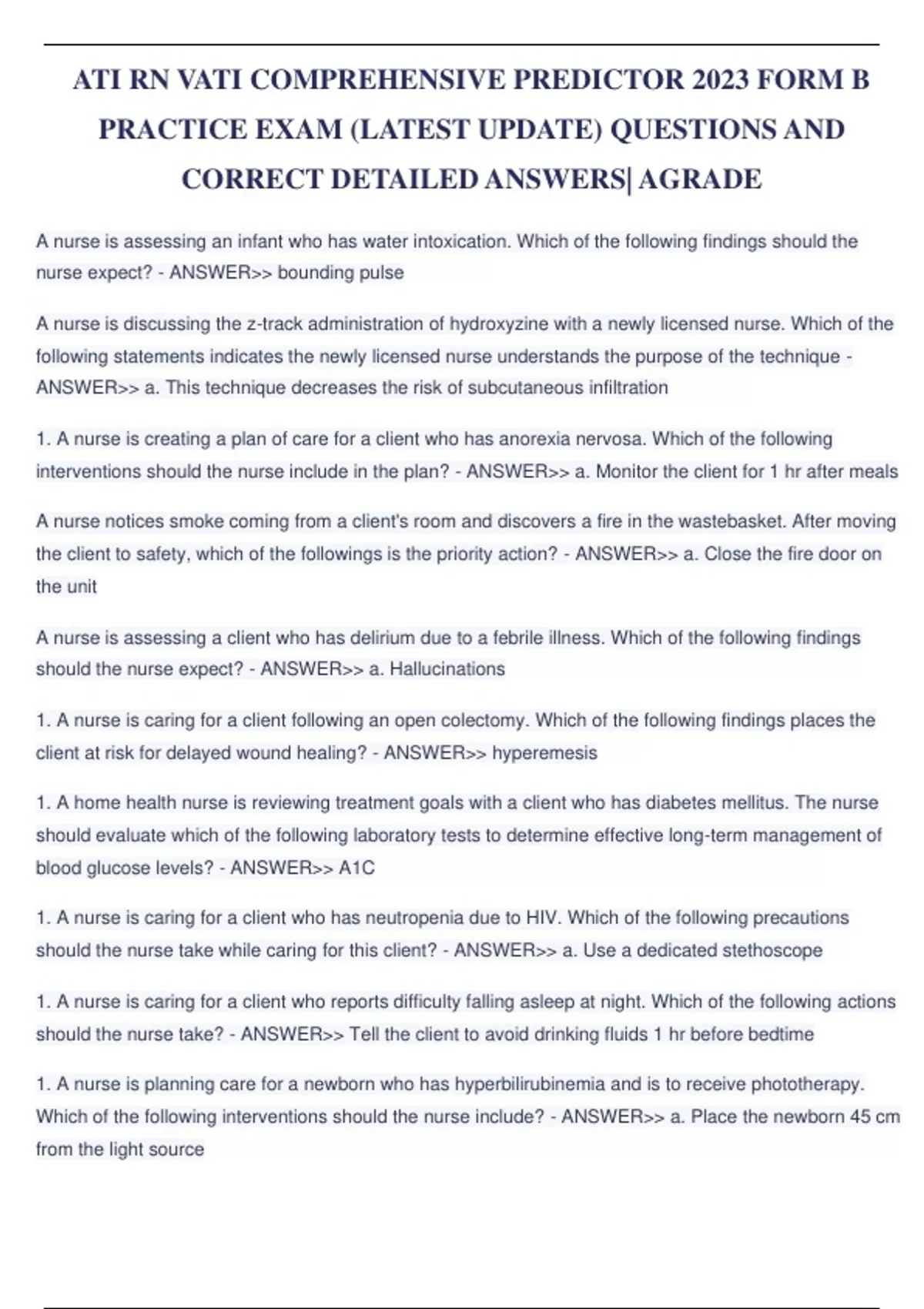 ATI RN VATI COMPREHENSIVE PREDICTOR 2023 FORM B PRACTICE EXAM (LATEST UPDATE) 100 QUESTIONS AND CORRECT DETAILED ANSWERS| AGRADE.