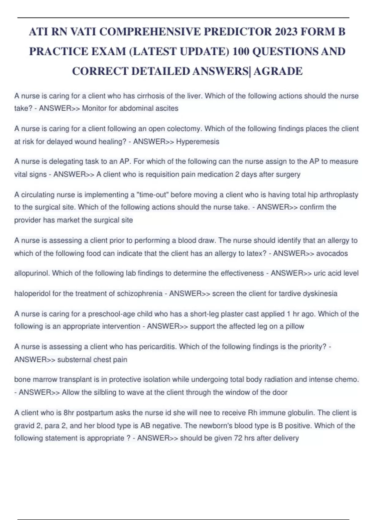 ATI RN VATI COMPREHENSIVE PREDICTOR 2023 FORM B PRACTICE EXAM (LATEST UPDATE) 100 QUESTIONS AND CORRECT DETAILED ANSWERS| AGRADE.