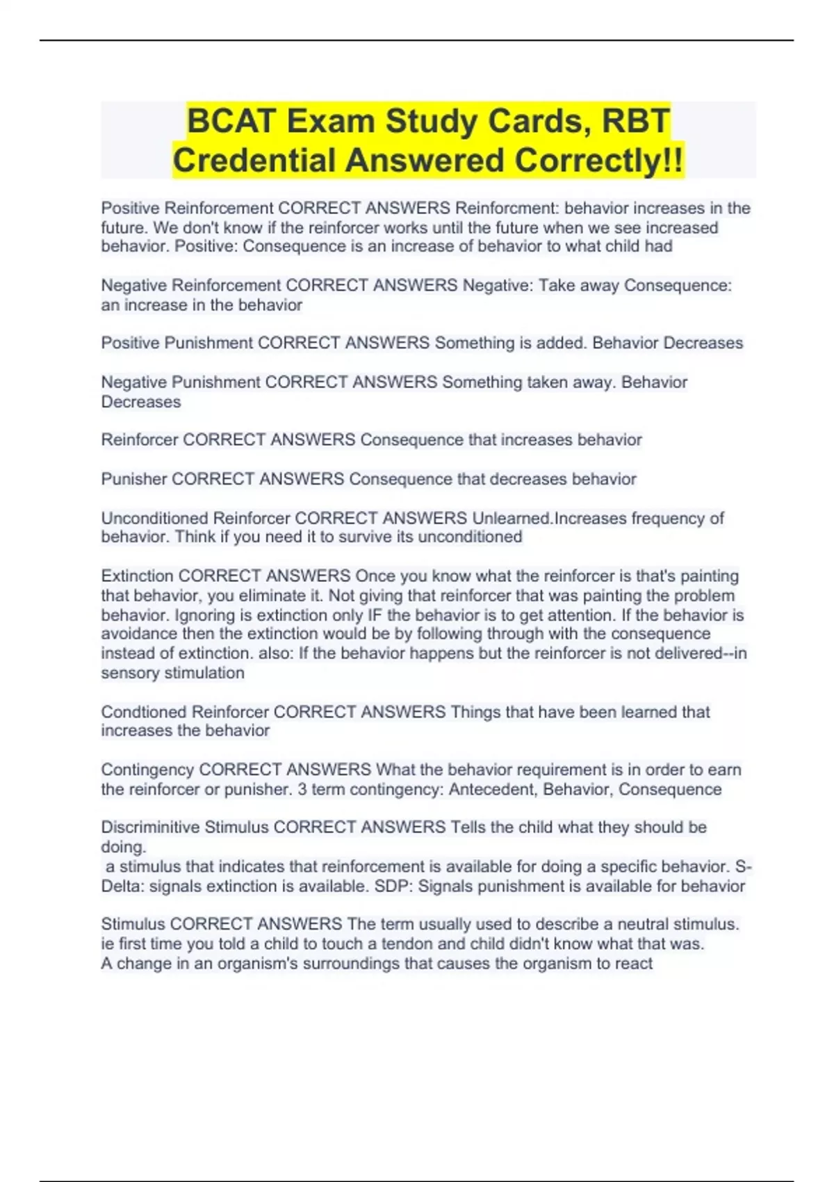 BCAT Exam Study Cards