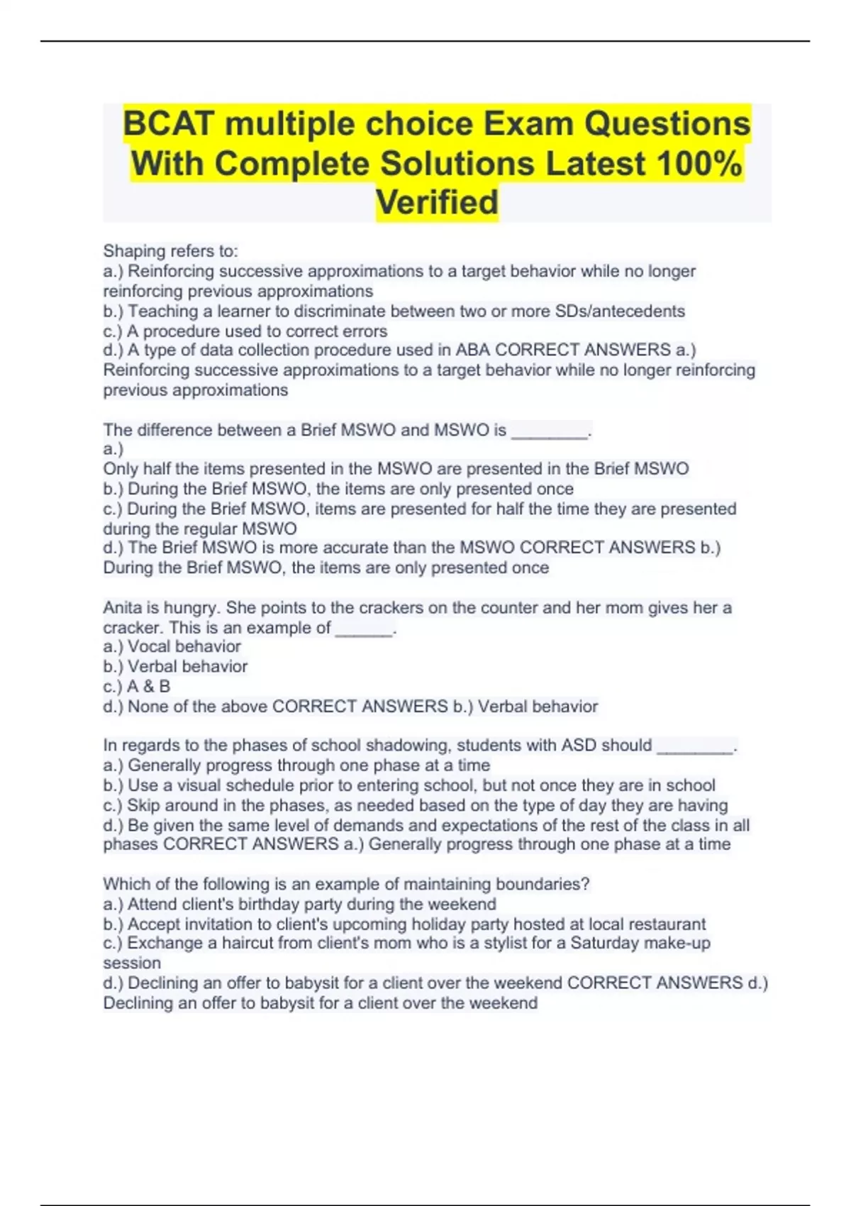 BCAT multiple choice Exam Questions With Complete Solutions Latest
