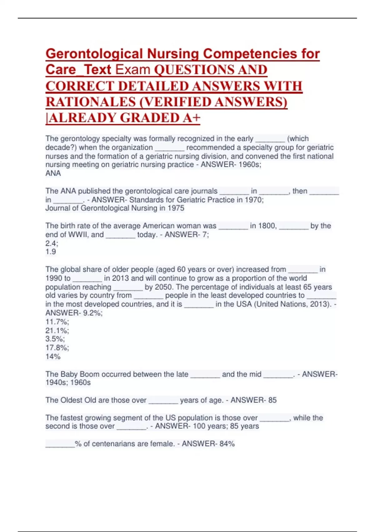 Gerontological Nursing 2023 Exam Questions Correct Answers