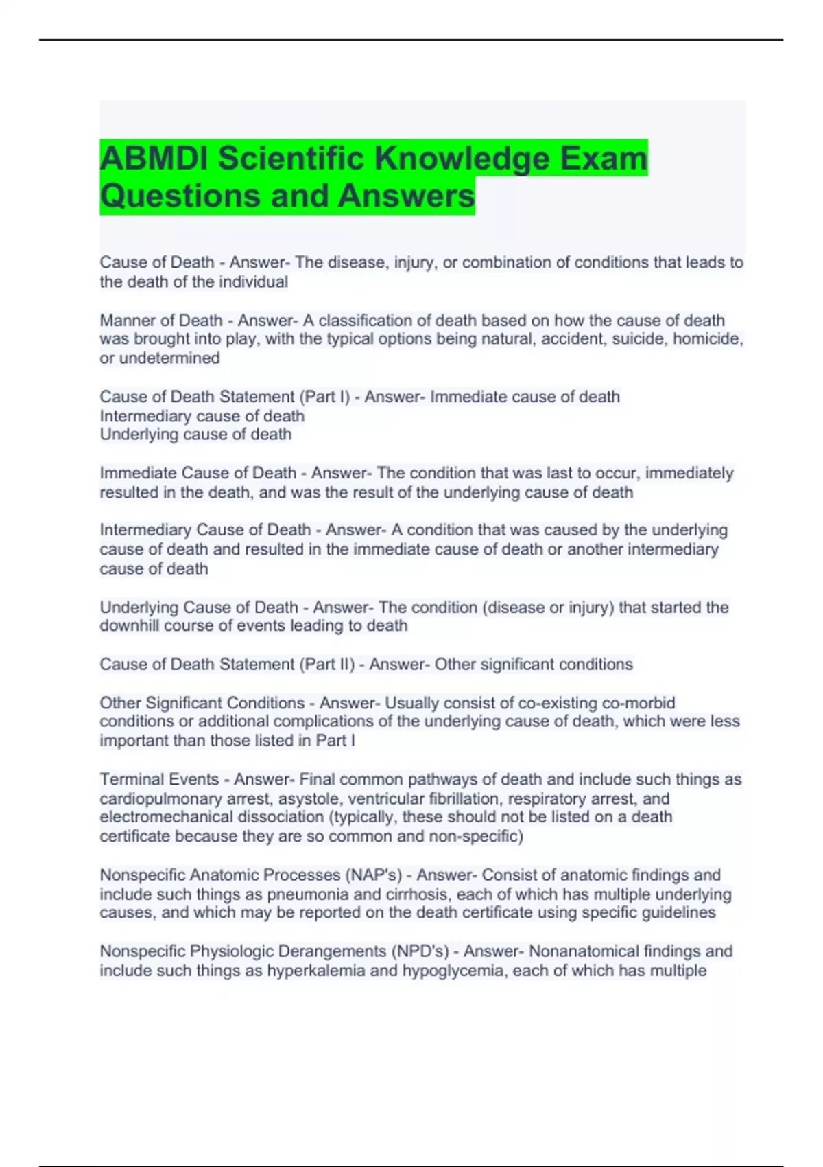 ABMDI Scientific Knowledge Exam Questions and Answers