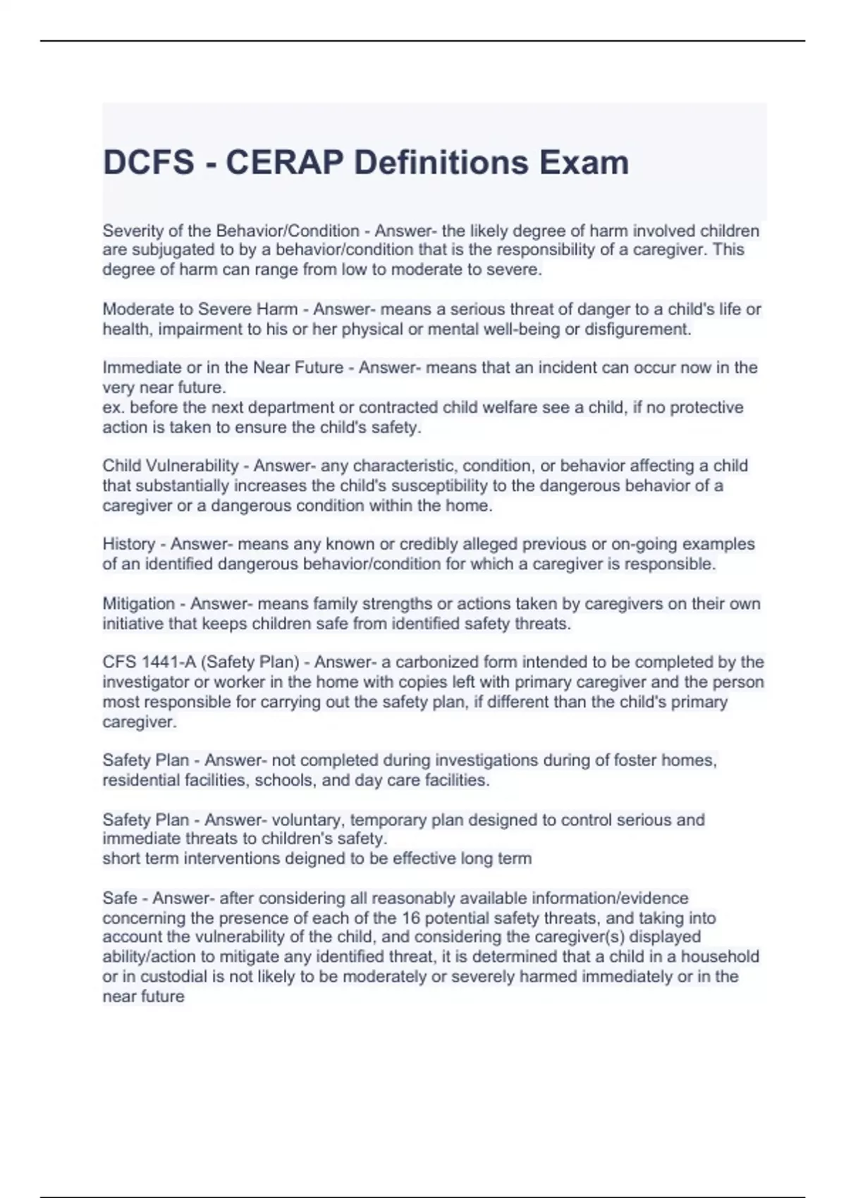 dcfs cerap definitions exam