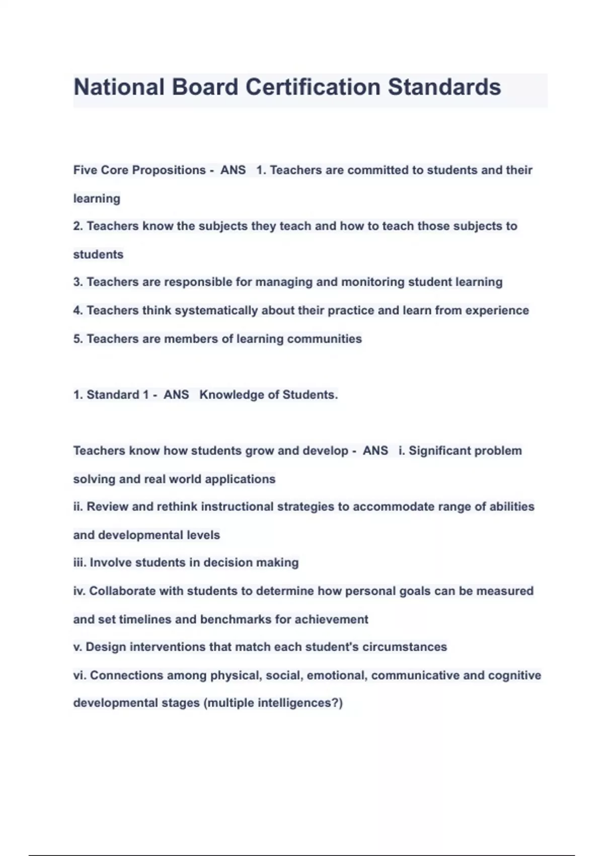 National Board Certification Standards QUESTIONS & ANSWERS 2024 ( A+ GRADED 100% VERIFIED)