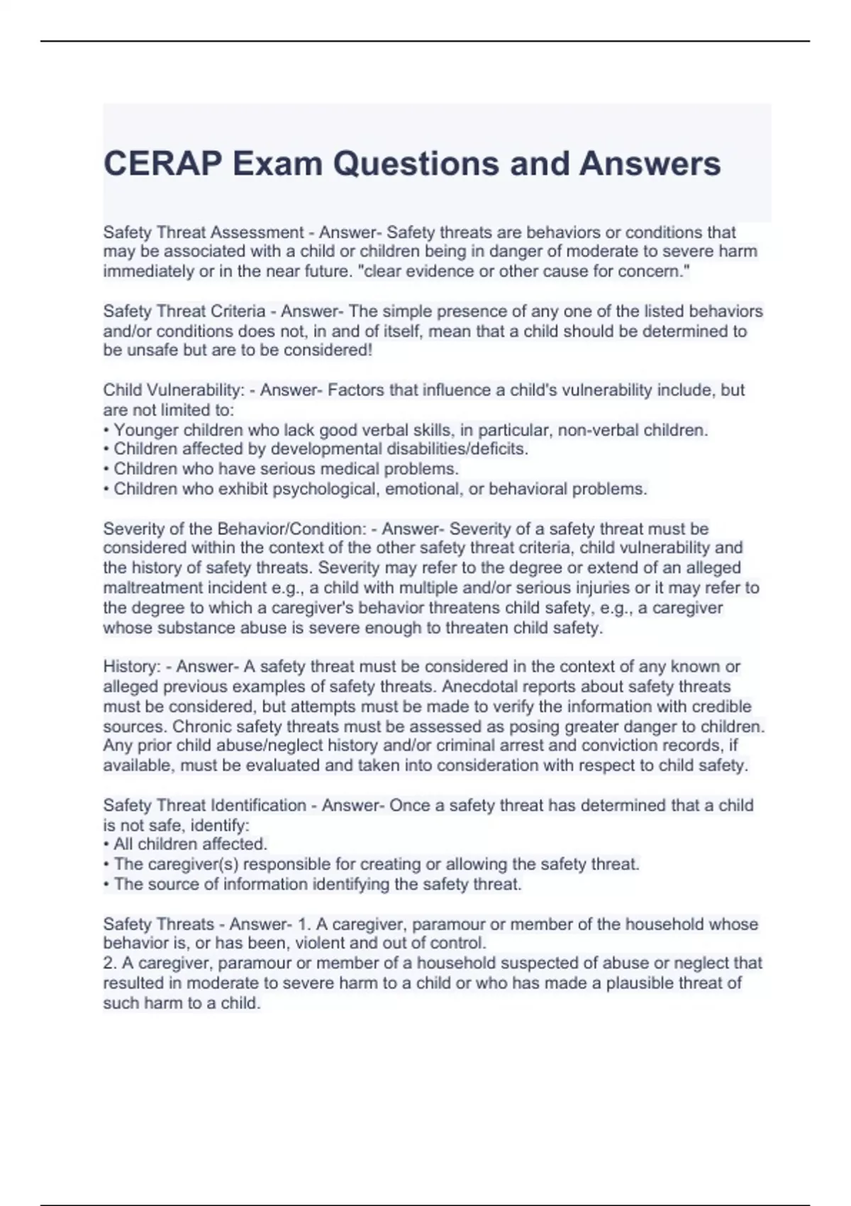 CERAP Exam Questions and Answers- Graded A
