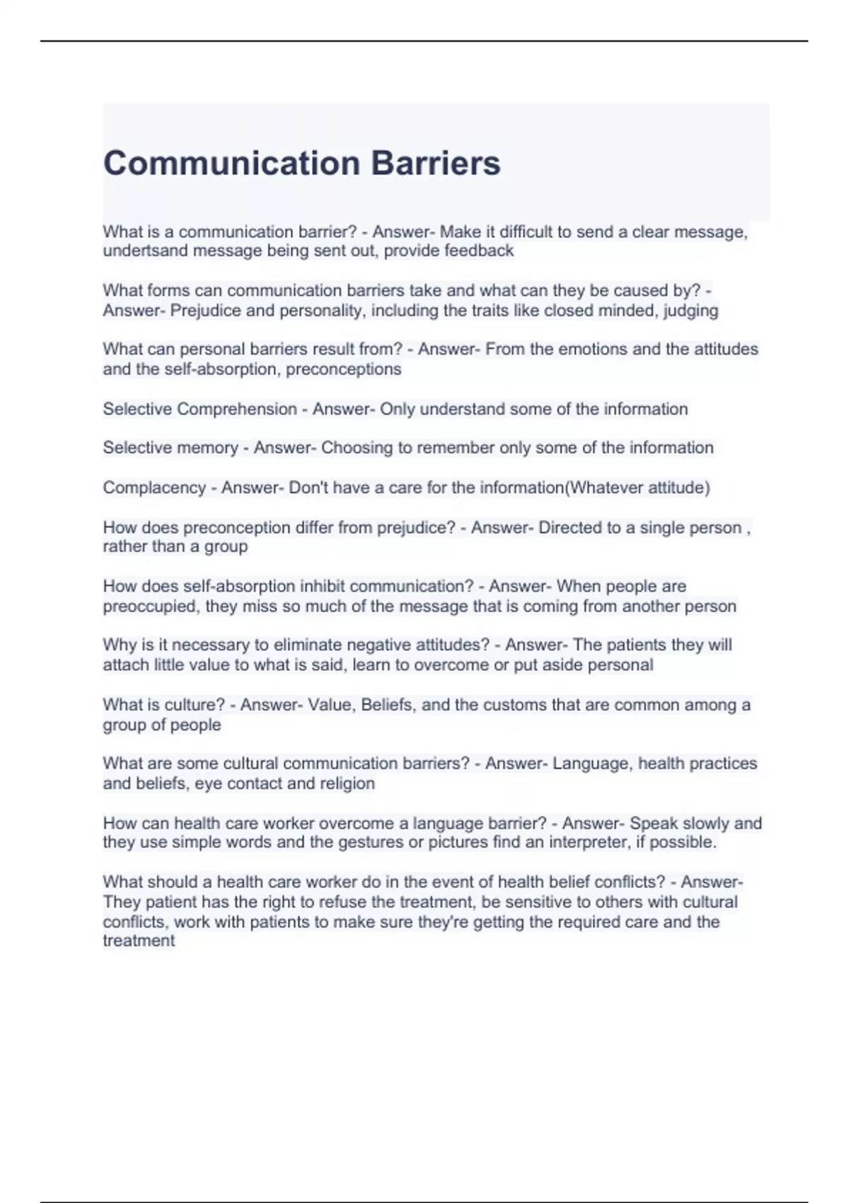 Communication Barriers Exam Questions and Answers