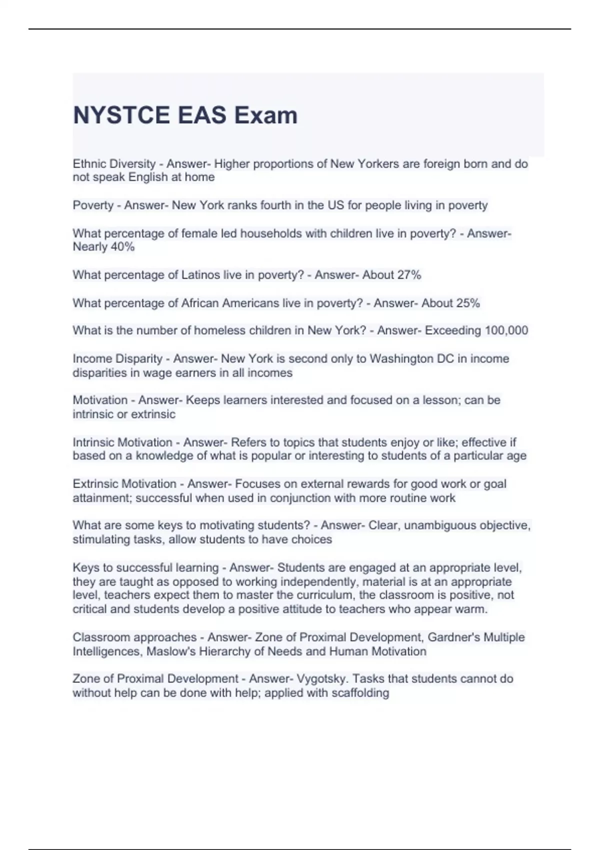 NYSTCE EAS/EAS Exam Bundle (Graded A)