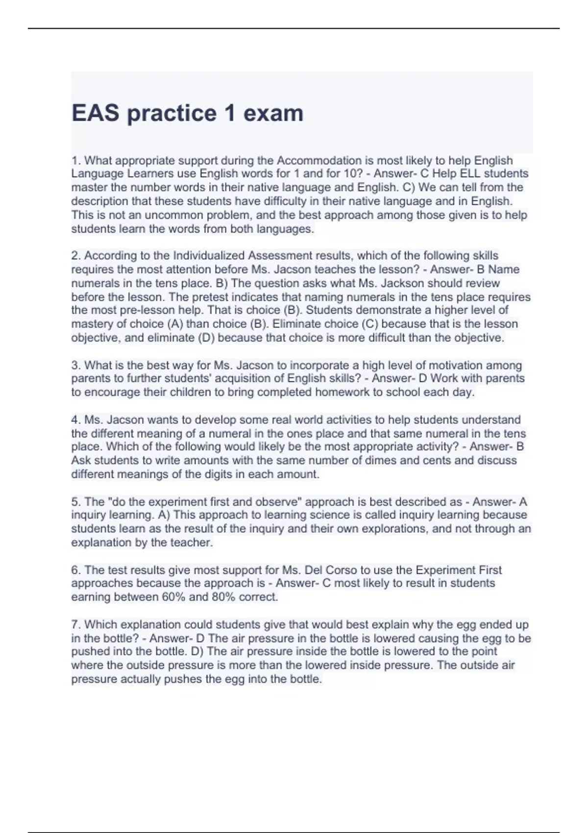 EAS practice 1 exam with correct answers