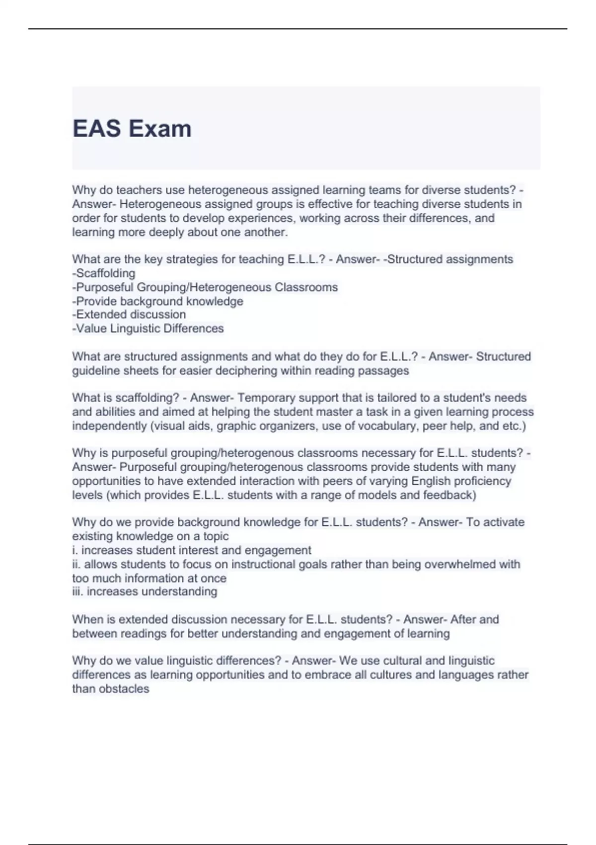EAS Exam Questions with correct Answers 100%