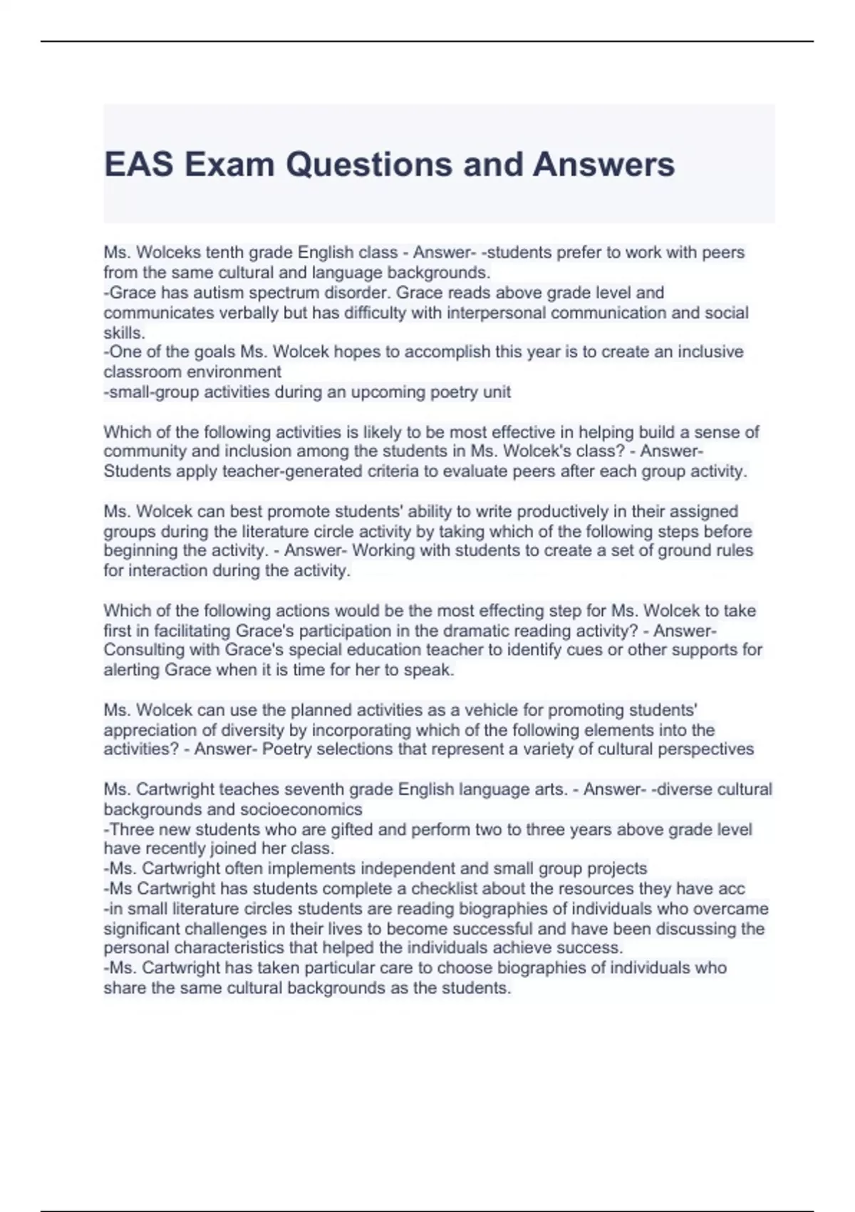 EAS Exam Questions and Answers