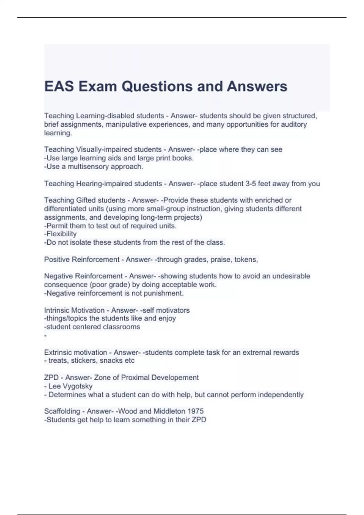 EAS Exam Questions and Answers -Graded A