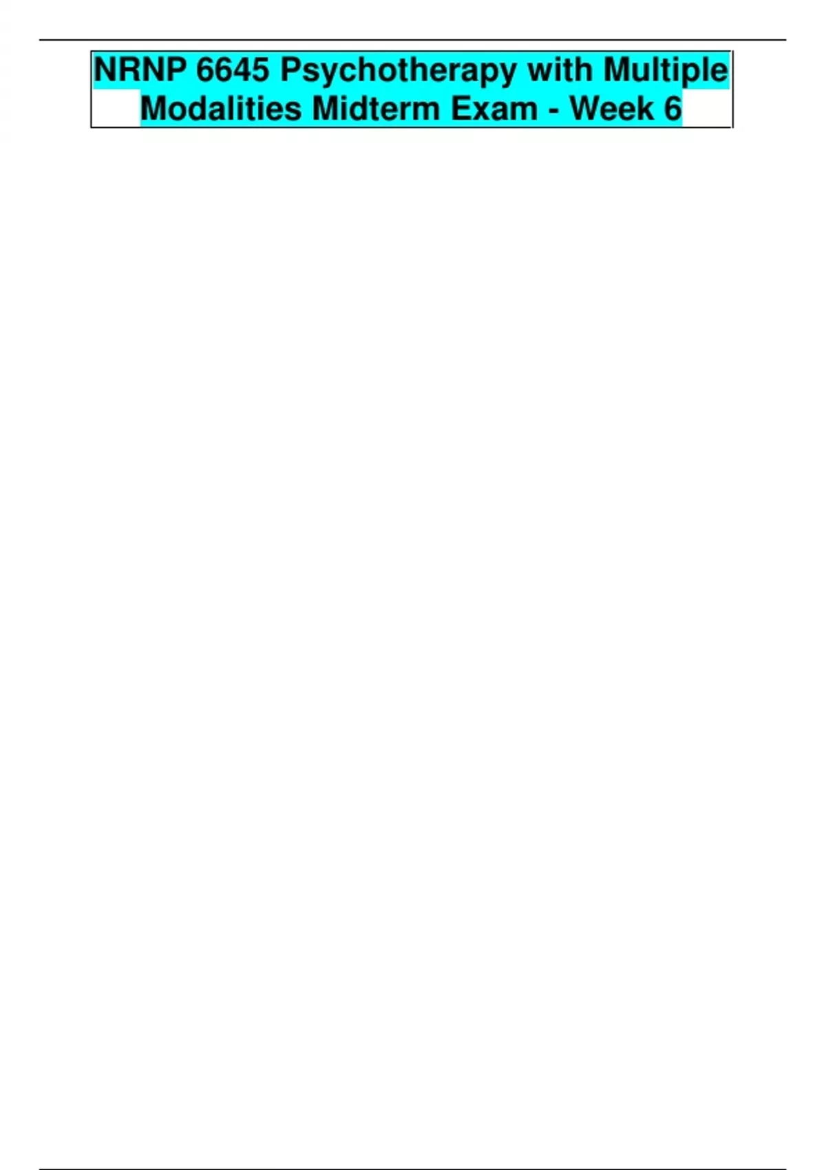 NRNP 6645 Psychotherapy with Multiple Modalities Midterm Exam Week 6 WITH VERIFIED ANSWERS BY EXPERT TUTORS