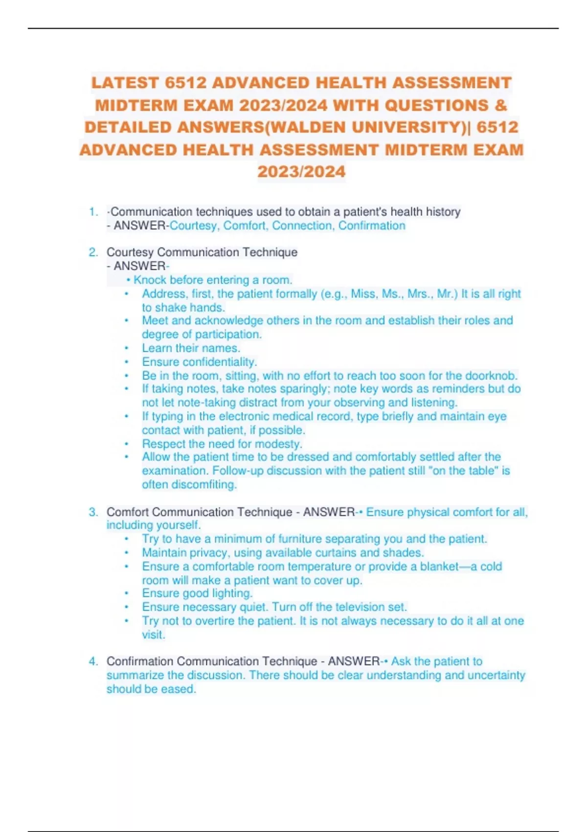 ADVANCED HEALTH ASSESSMENT MIDTERM EXAM