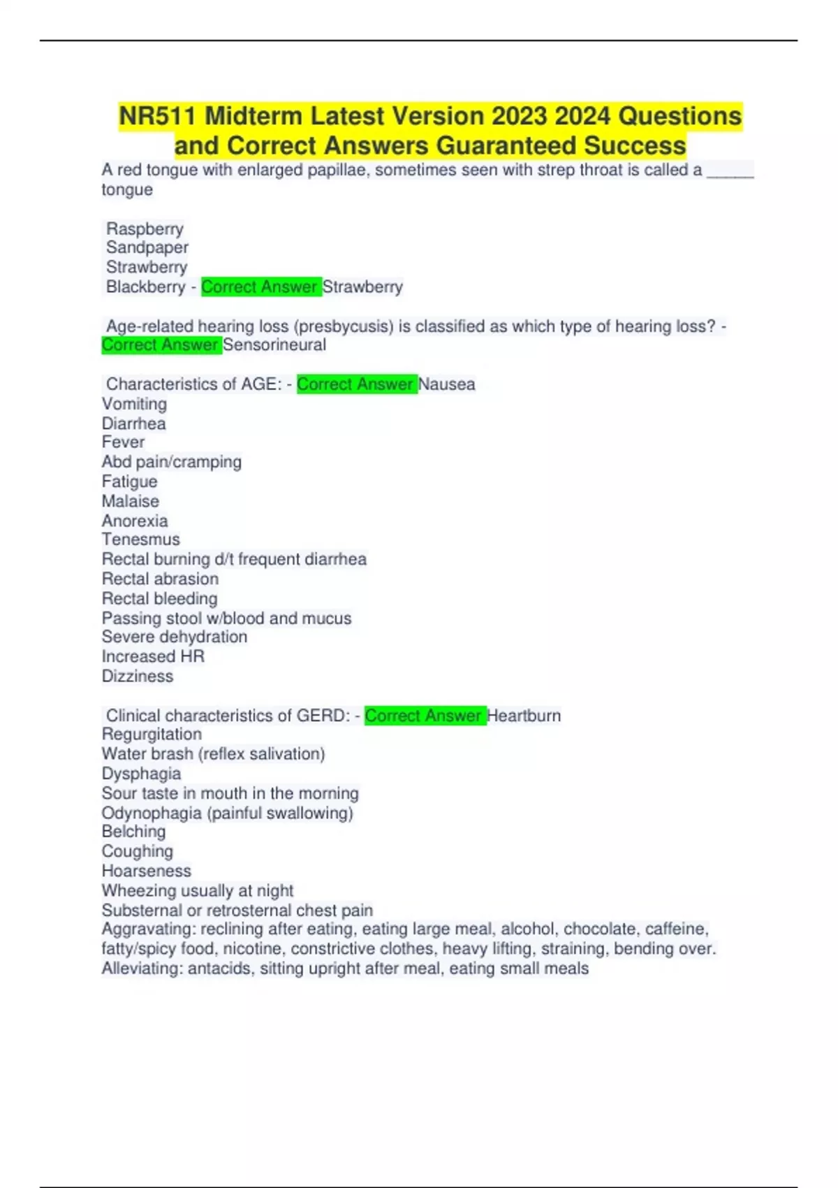 Nr511 midterm review differential diagnosis Compilation 100% Complete