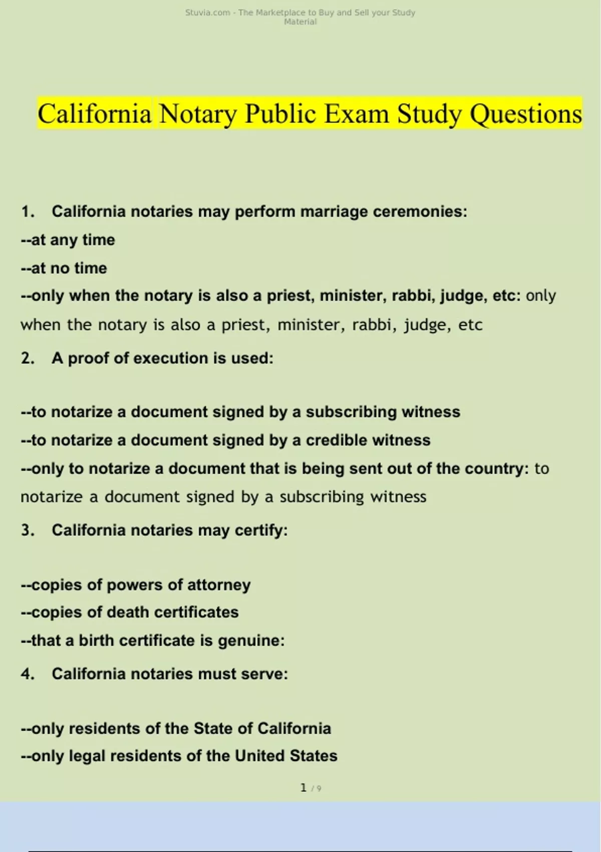 California Notary Public Practice Exam 2024 Questions and Answers (Verified Answers)