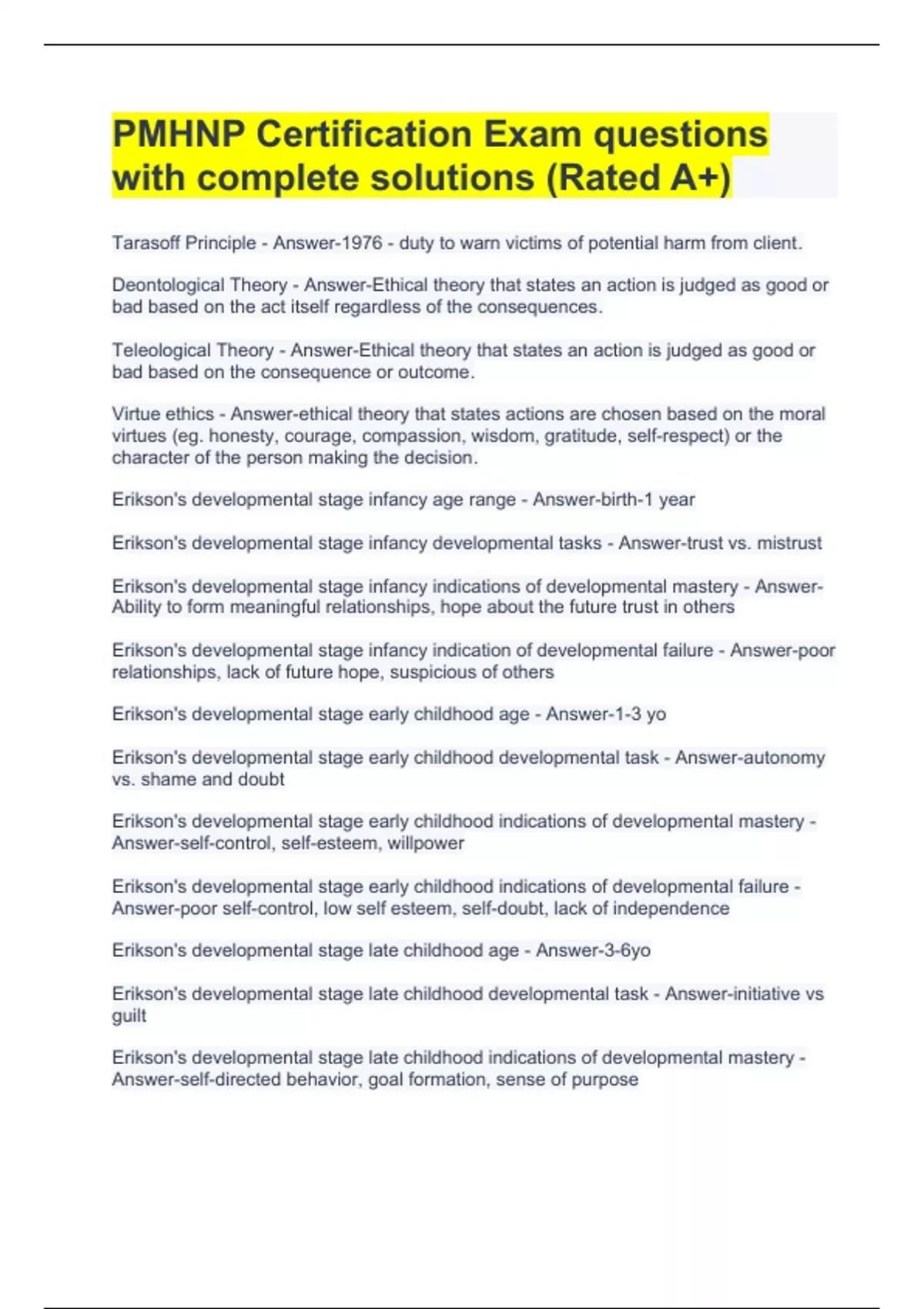 ANCC PMHNP EXAM BUNDLE (GRADED A+) ( GUARANTED PASS)