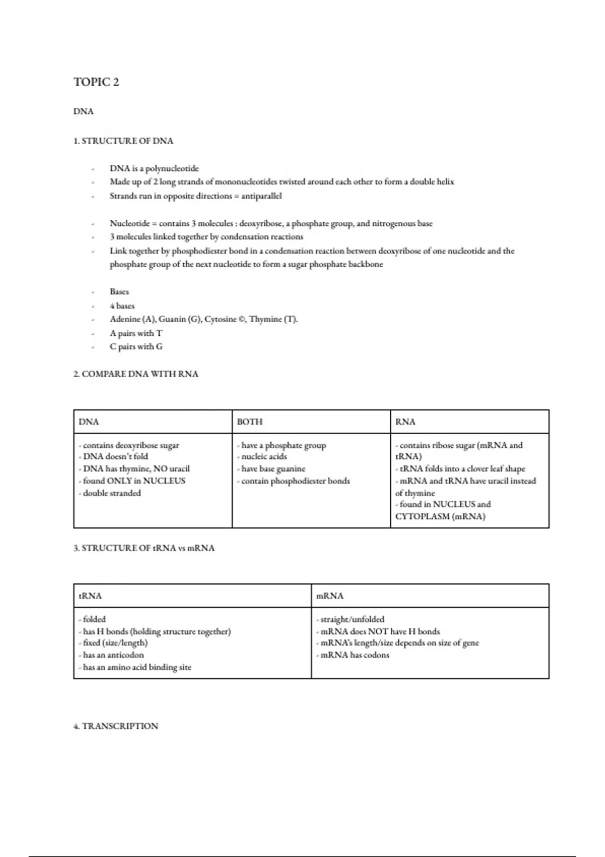 - contains deoxyribose sugar - have a phosphate group - contains ribose sugar (mRNA and