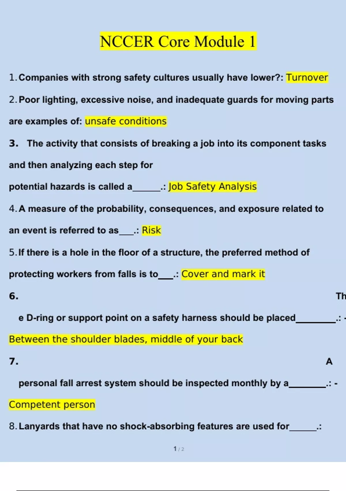 NCCER Core BUNDLED NCCER study guide Module 1 Basic Safety ALL BUNDLED 20232024 with complete solution
