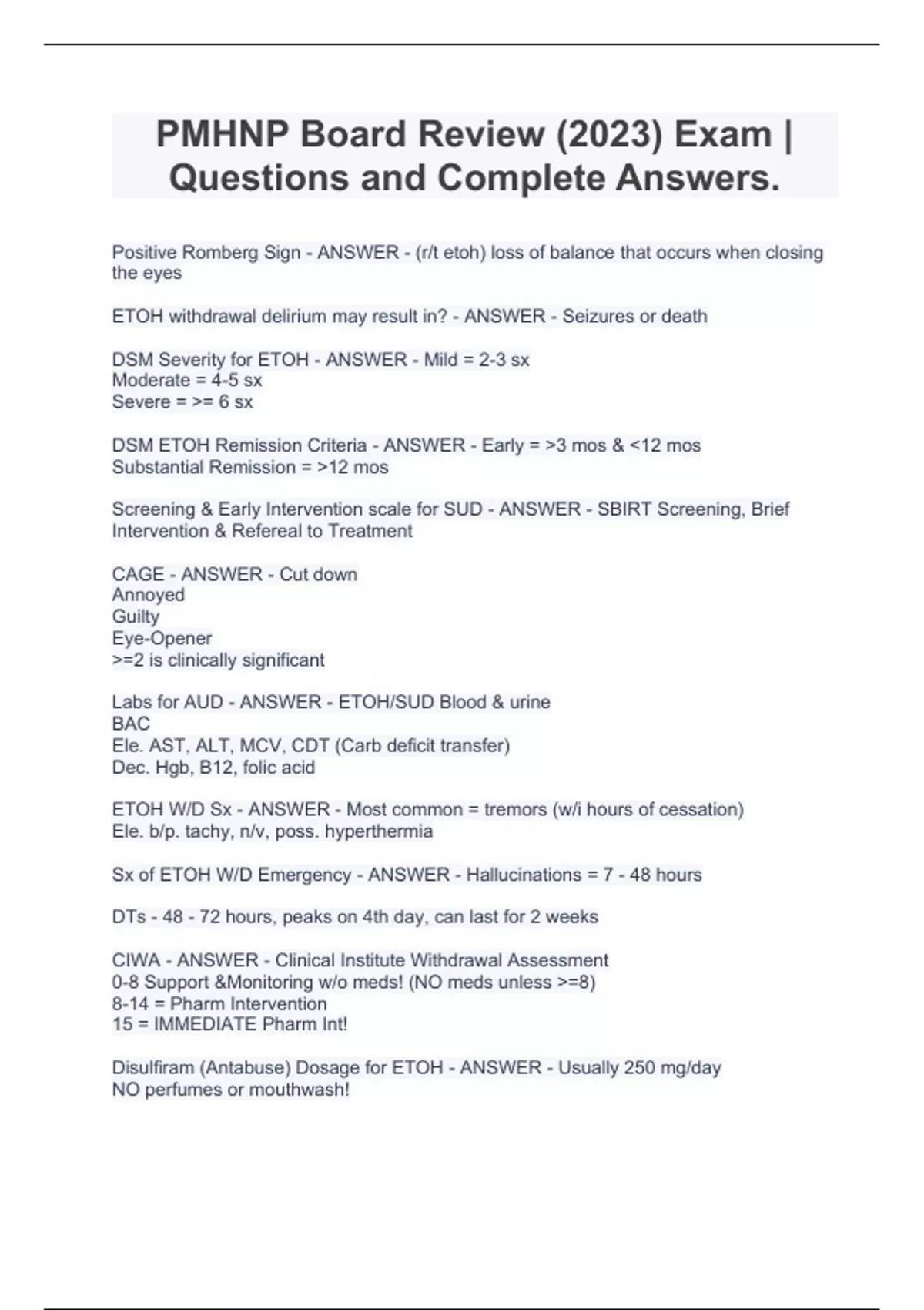 PMHNP Board Review (2023) Exam | Questions and Complete Answers.