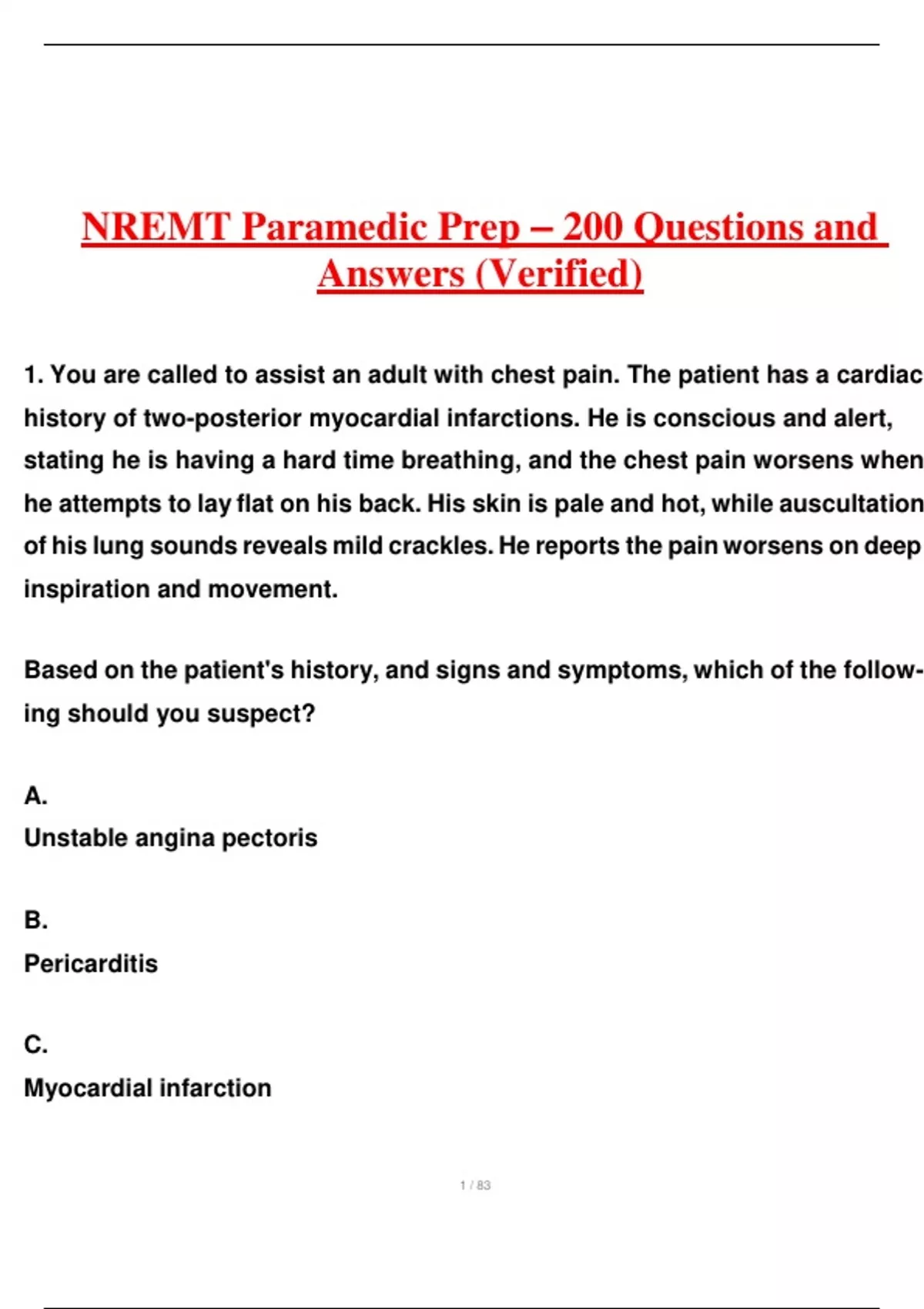 NREMT Paramedic Prep – 200 Questions and Answers (Verified) NREMT Paramedic Prep – 200 Questions and Answers (Verified) NREMT Paramedic Prep – 200 Questions and Answers (Verified) NREMT Paramedic Prep – 200 Questions and Answers (Verified) NREMT Paramedic Prep – 200 Questions and Answers (Verified)