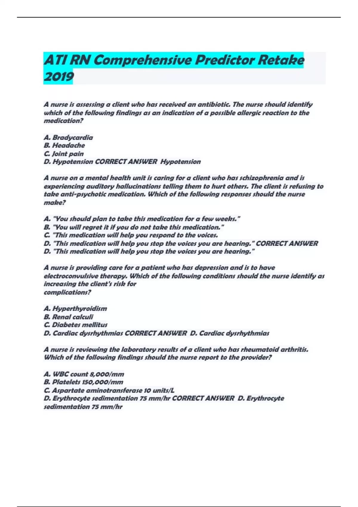 - ATI RN Comprehensive Predictor Retake 2019