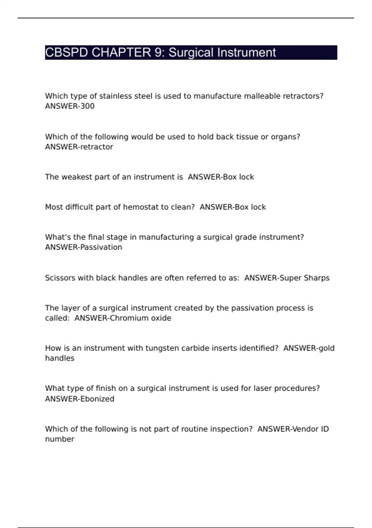 CBSPD CHAPTER 9: Surgical Instrument|Questions with 100% Correct Answers | Updated 2024 | Guaranteed A+