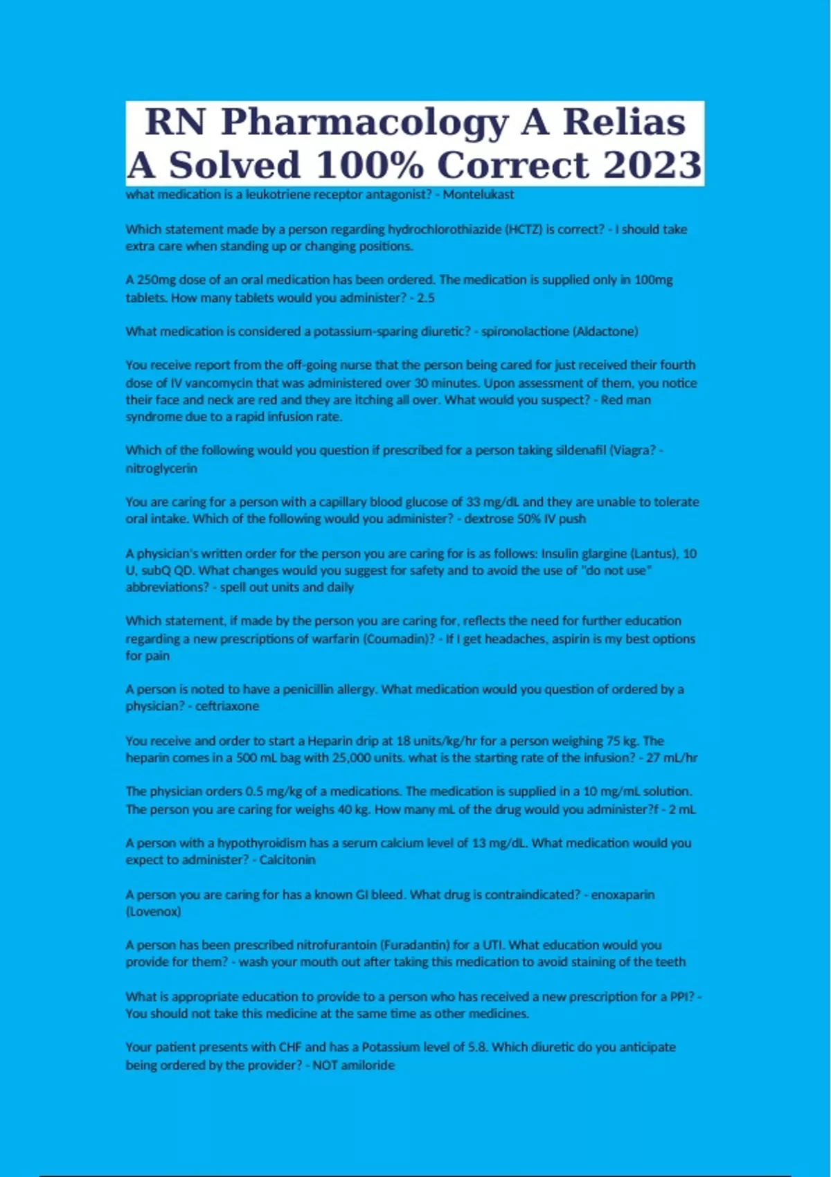 RN Pharmacology A Relias A Solved 100% Correct 2023/24