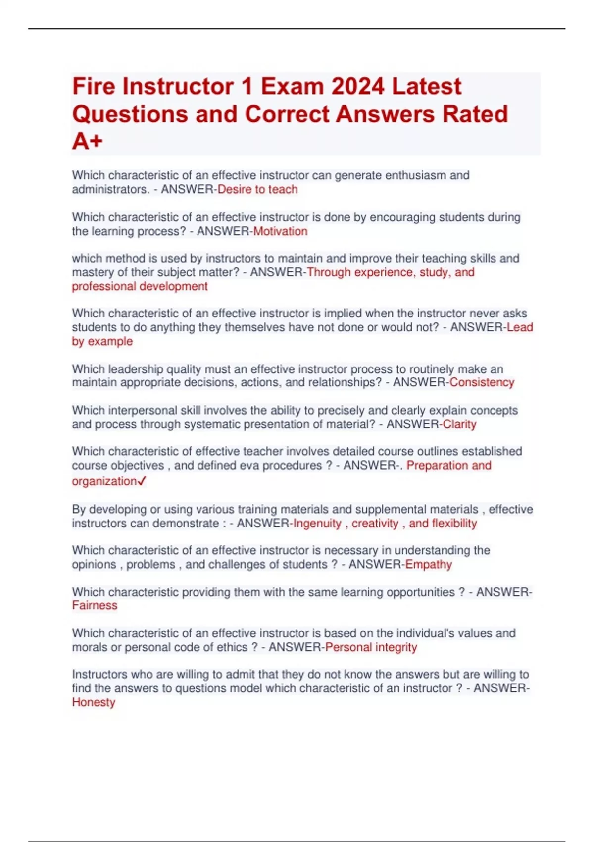 Fire Instructor 1 Exam 2024 Latest Questions and Correct Answers Rated A+