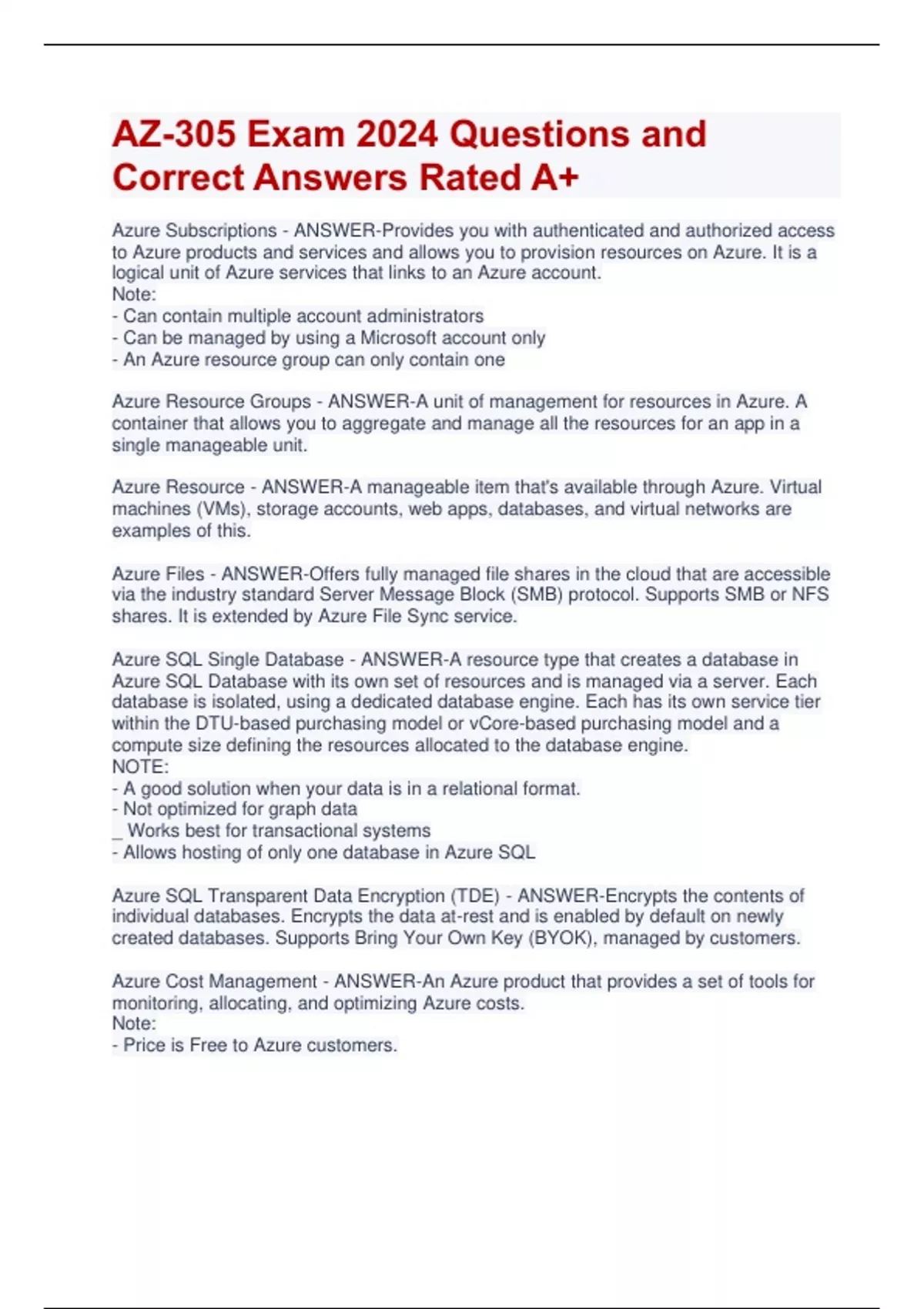 AZ-305 Exam 2024 Questions and Correct Answers Rated A+