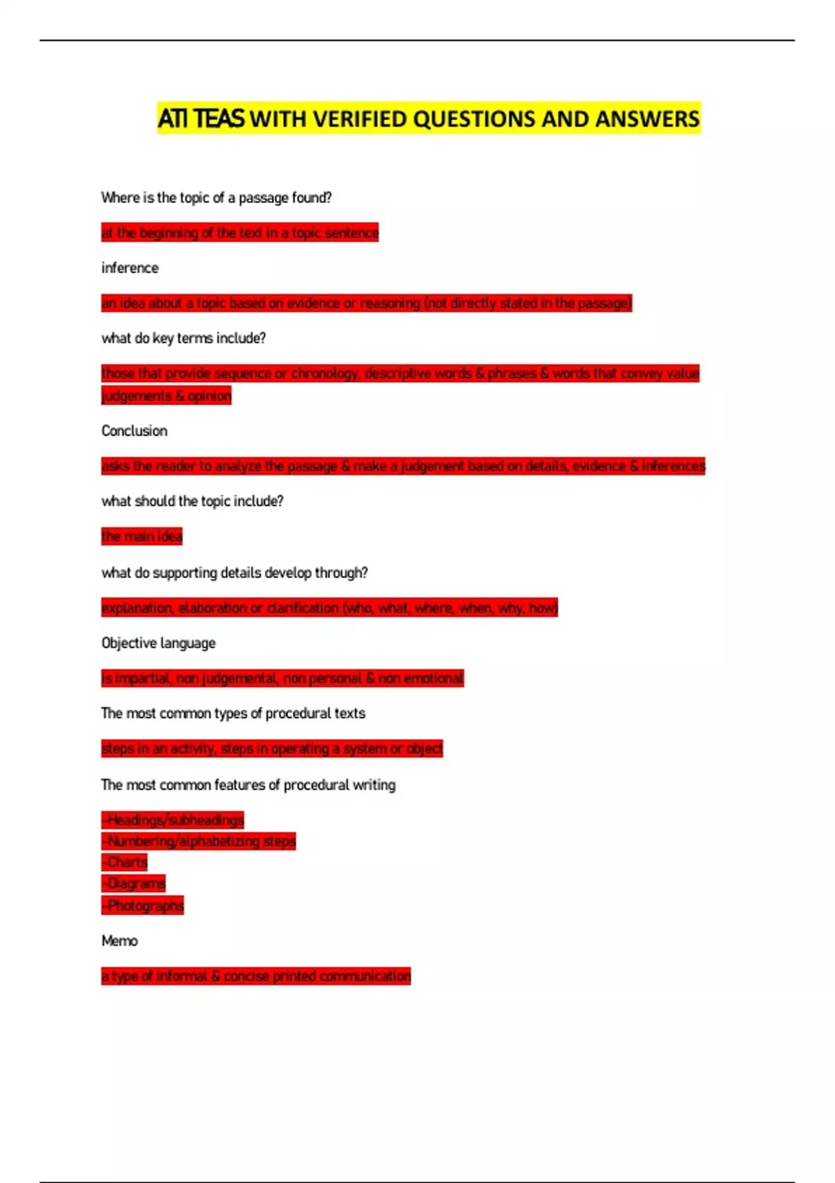 ATI TEAS WITH VERIFIED QUESTIONS AND ANSWERS