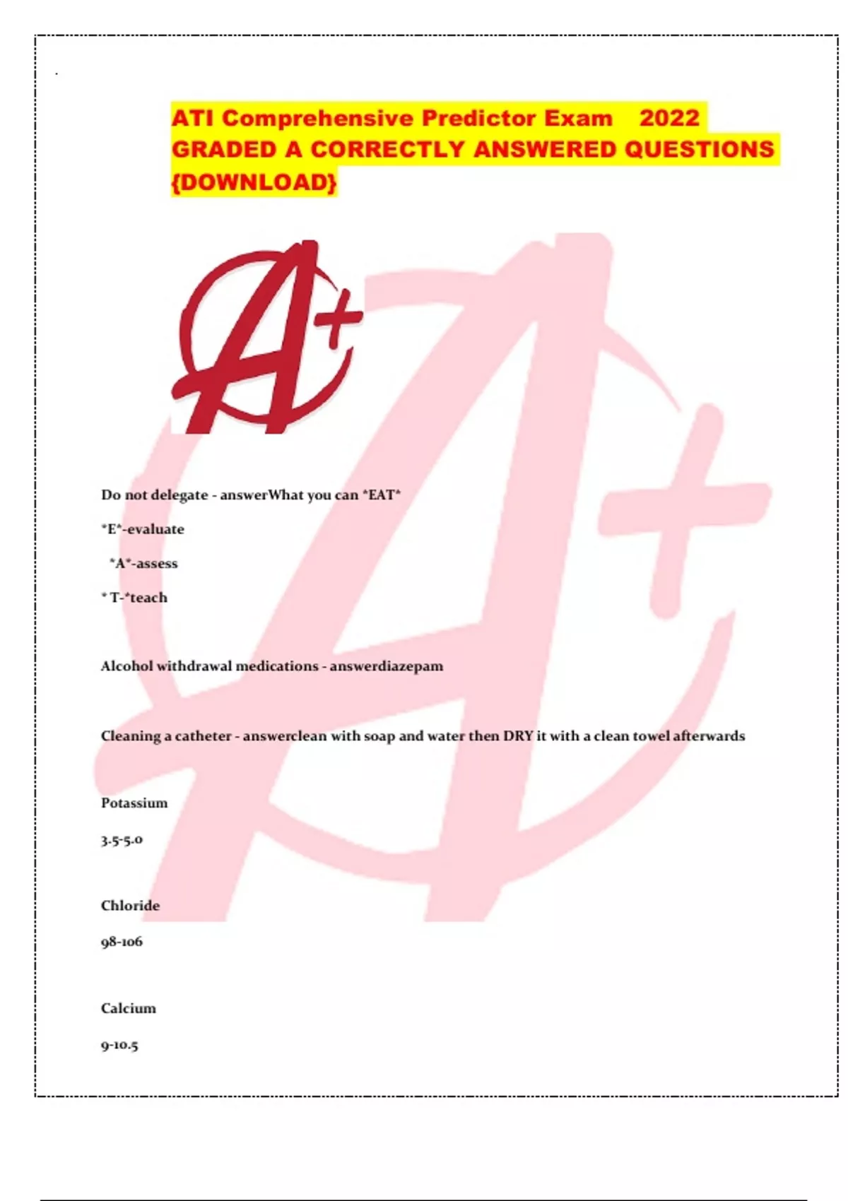 ATI Comprehensive Predictor Exam 2022 GRADED A CORRECTLY ANSWERED QUESTIONS {DOWNLOAD}