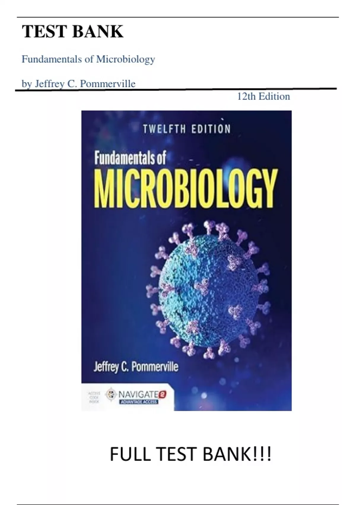 Test Bank for Fundamentals of Microbiology 12th Edition by Jeffrey C. Pommerville||ISBN NO:10,1284211754||ISBN NO:13,9781284211757||Chapter 1-27||Complete Guide A+||Latest Update