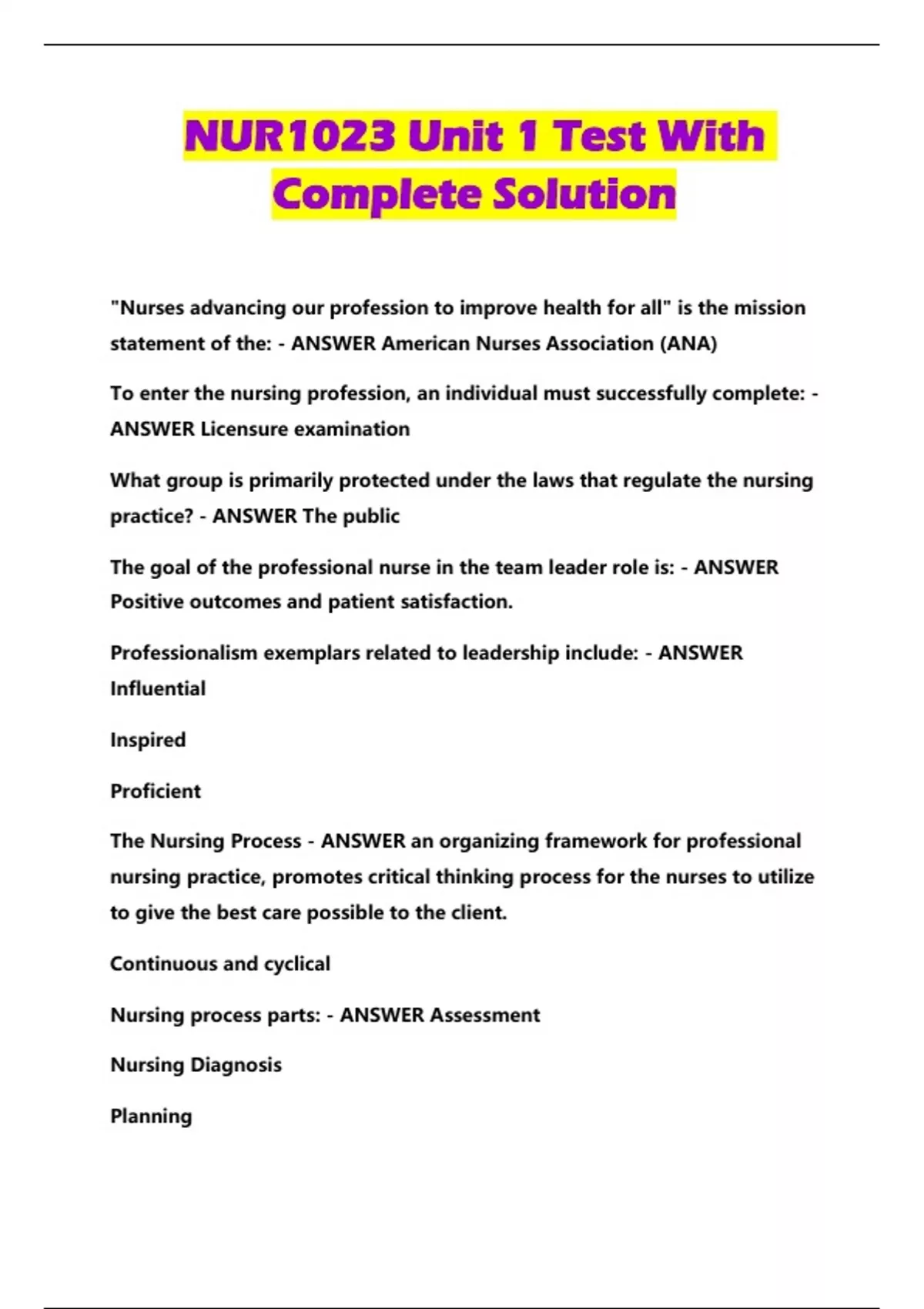 NURS 1023 FULL PACKAGE DEAL WITH COMPLETE SOLUTION
