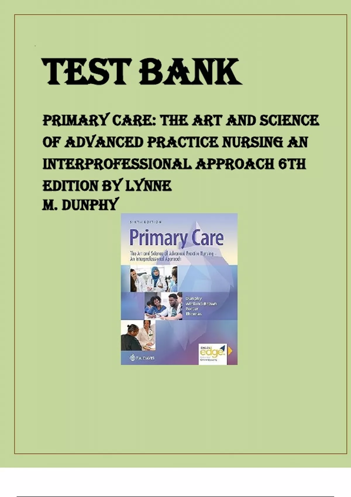 Test Bank Primary Care The Art And Science Of Advanced Practice Nursing An Inter-professional Approach 6th Edition By Lynne M Dunphy TEST BANKS with Rational_rich questions and complete Solutions Latest Verified Review 2024 Practice Questions and Answers
