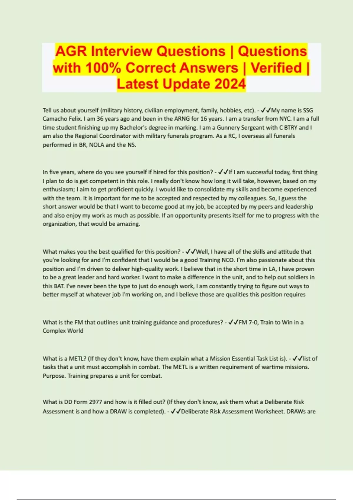 AGR Interview Questions | Questions with 100% Correct Answers | Verified | Latest Update 2024