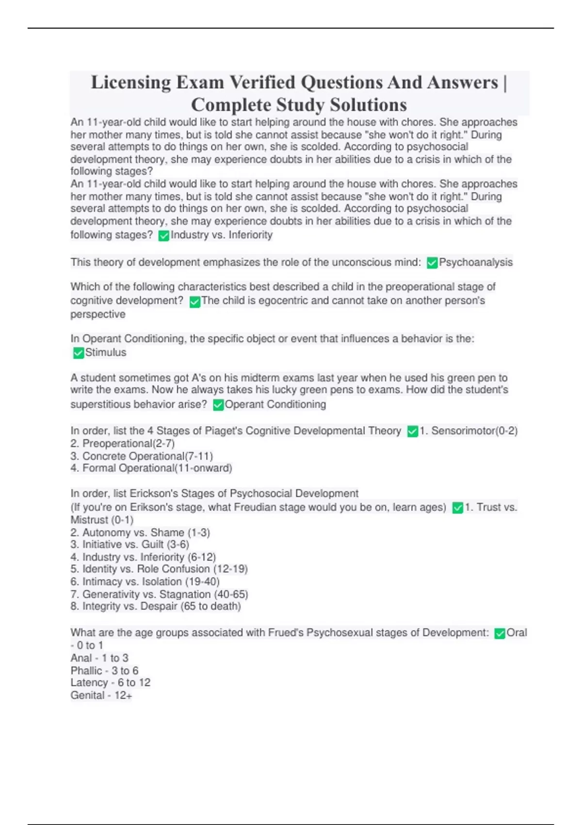 Licensing Exam Verified Questions And Answers | Complete Study Solutions