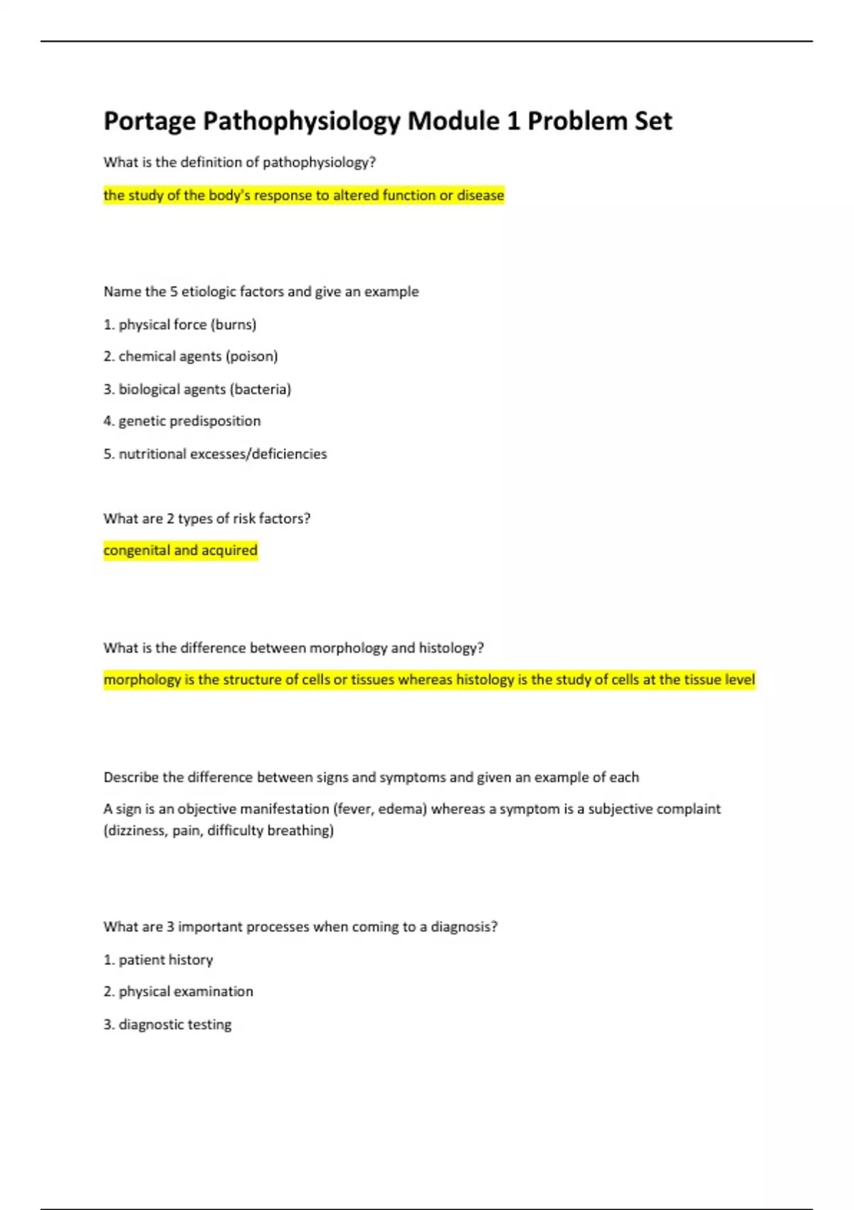 Portage Pathophysiology Module 1 Problem Set Score An A+