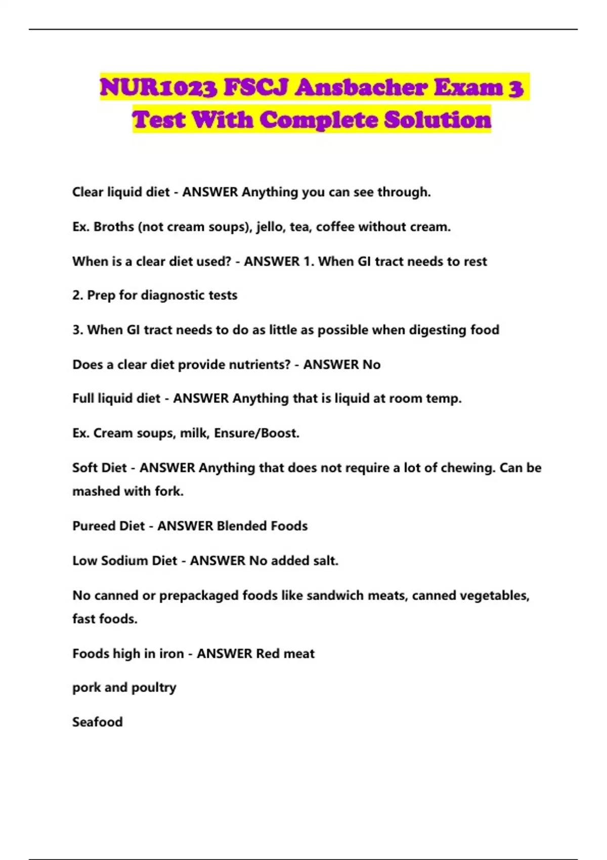 NUR1023 FSCJ Ansbacher Exam 3 Test With Complete Solution...