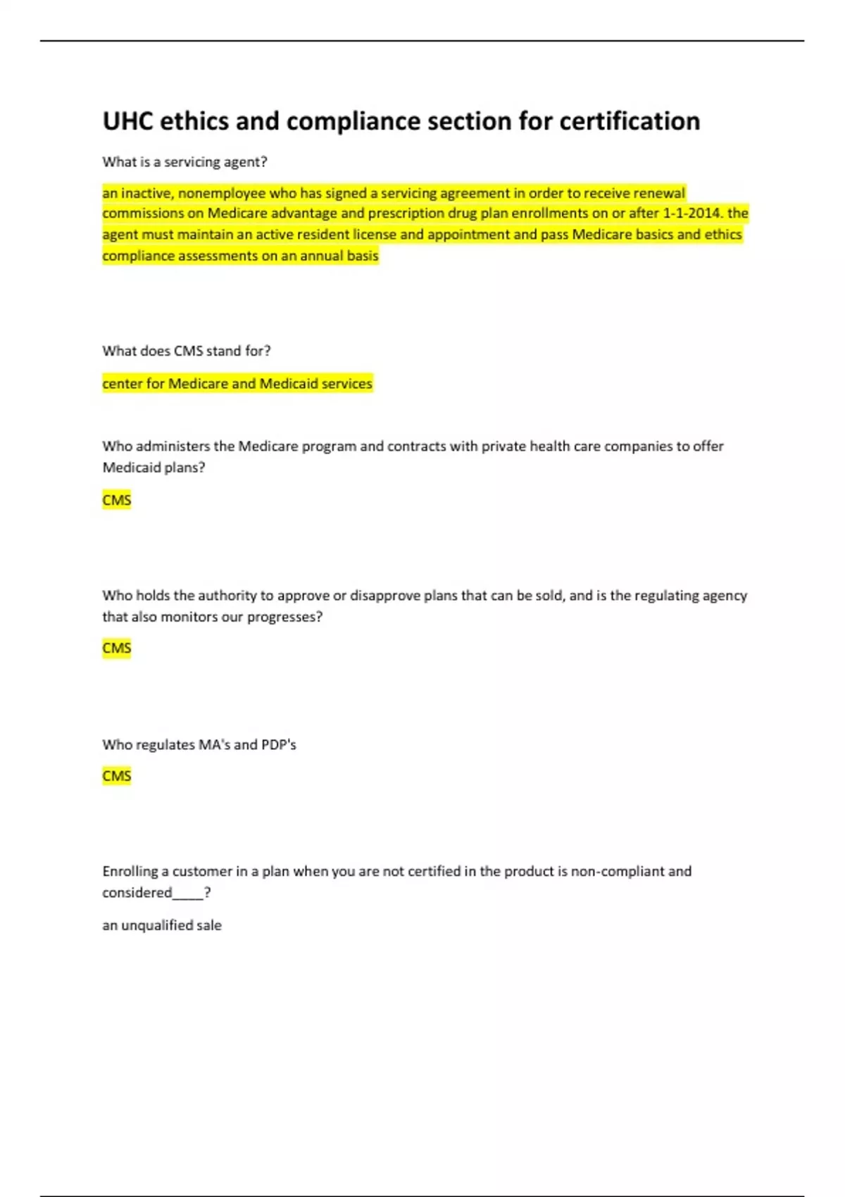 UHC ethics and compliance section for certification (100% Guaranteed)