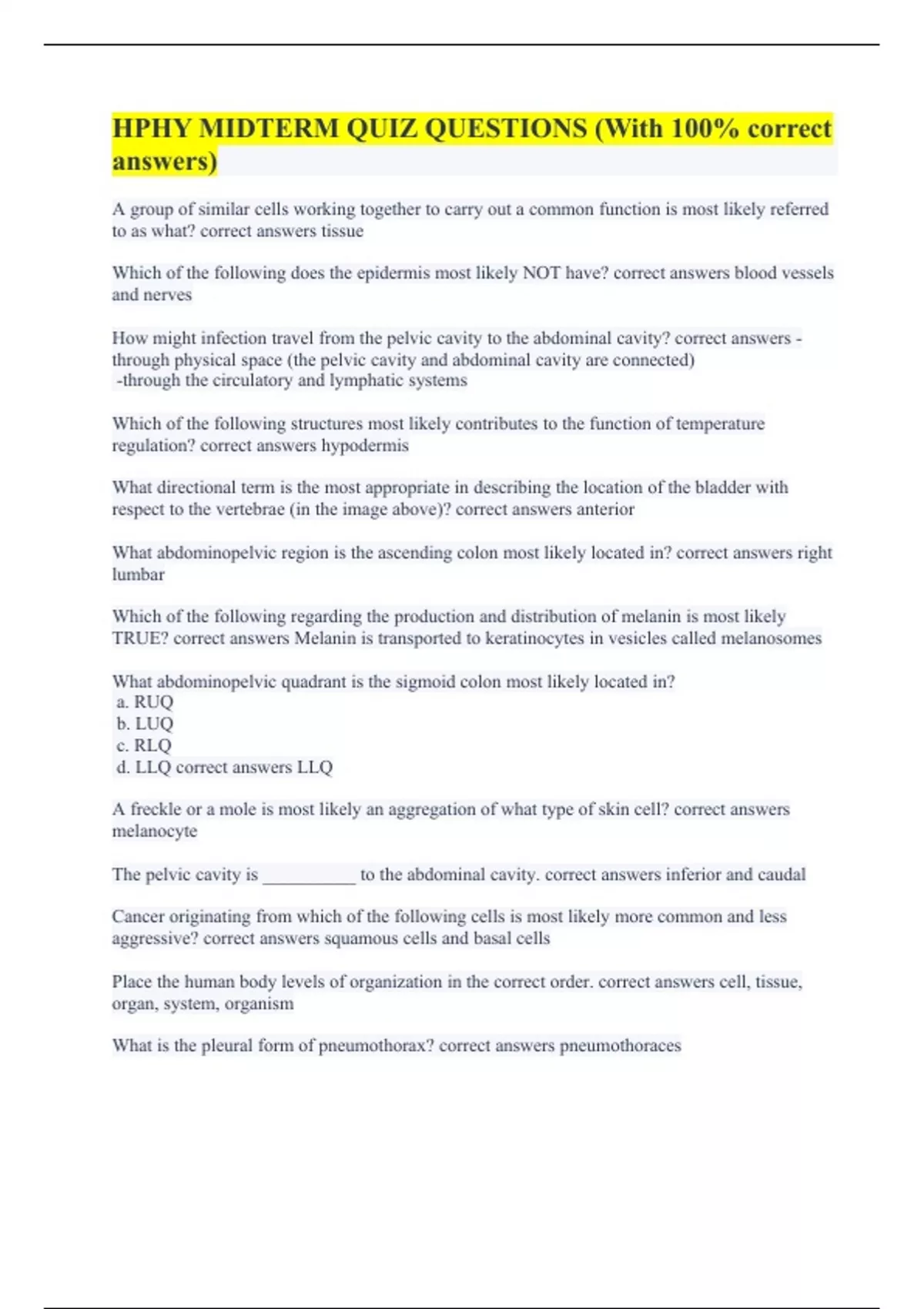 HPHY MIDTERM QUIZ QUESTIONS (With 100% correct answers)