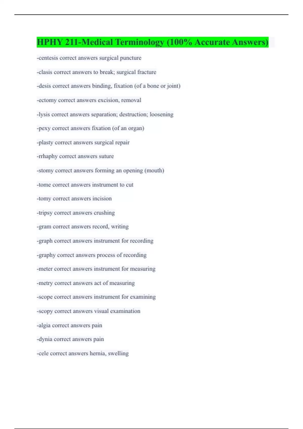 HPHY 211-Medical Terminology (100% Accurate Answers)