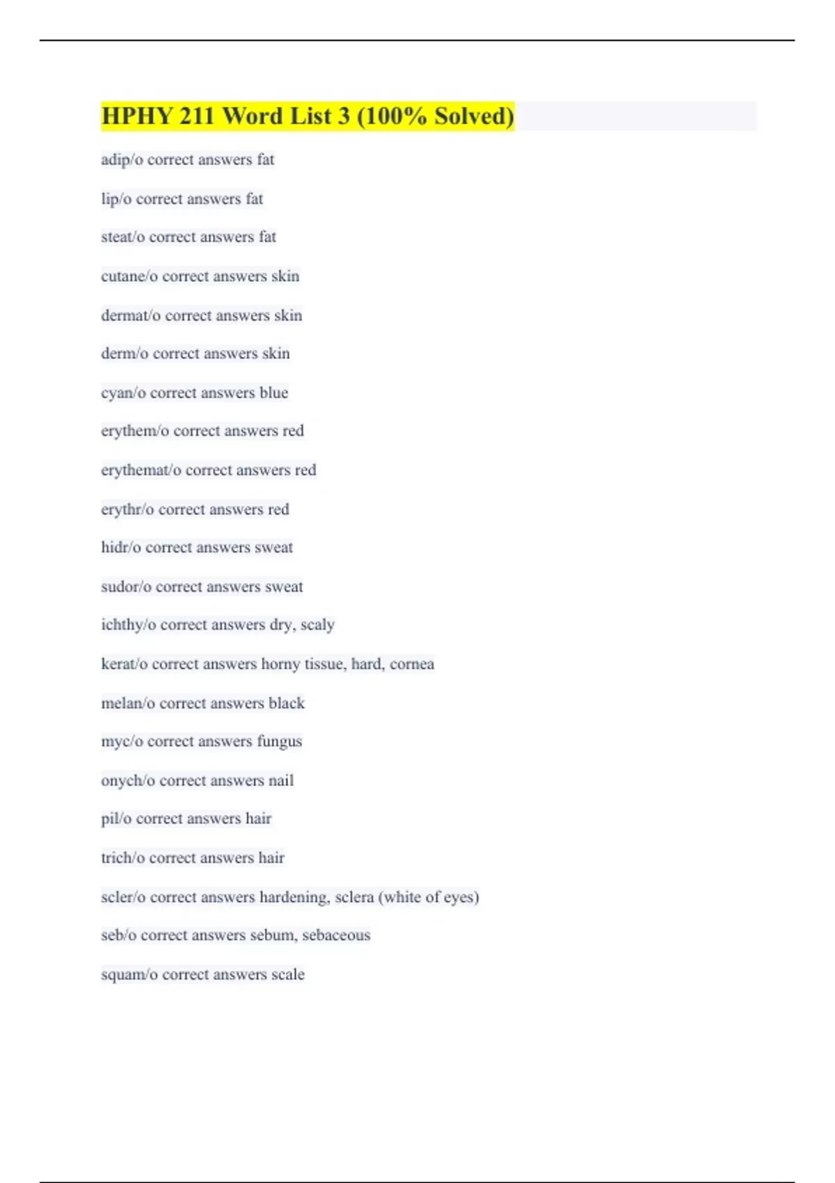 HPHY 211 Word List 3 (100% Solved)