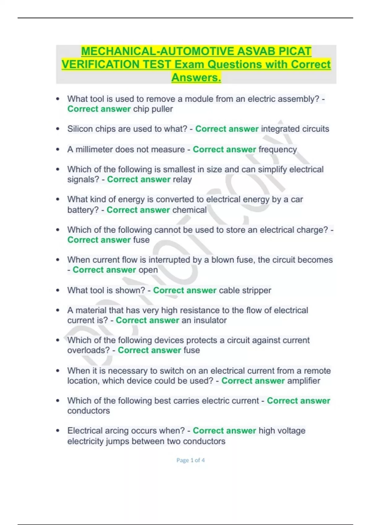 MECHANICAL-AUTOMOTIVE ASVAB PICAT VERIFICATION TEST Exam Questions with Correct Answers..docx