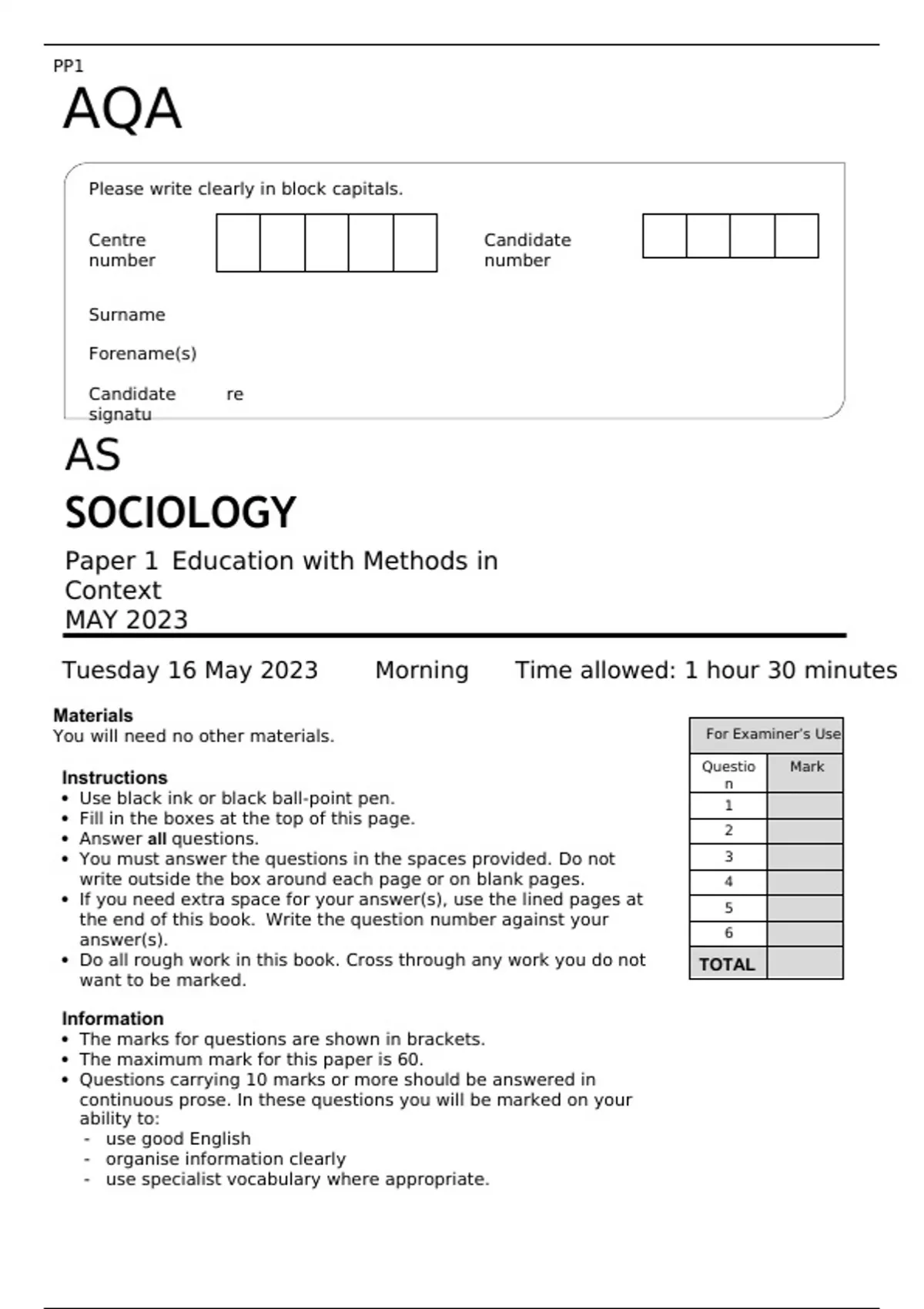 Tuesday 16 May 2023Morning Time allowed: 1 hour 30 minutes