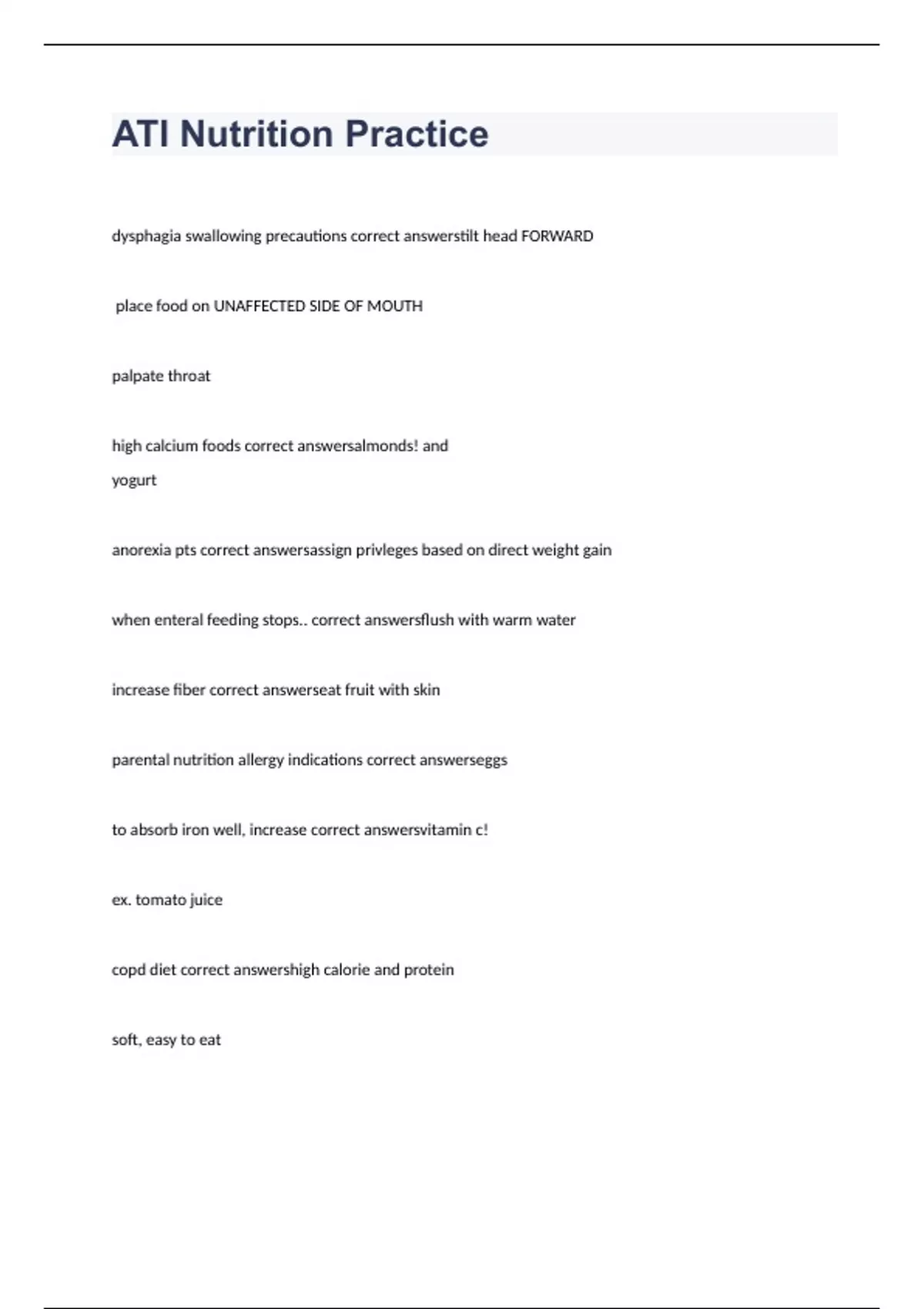 - ATI Nutrition Practice