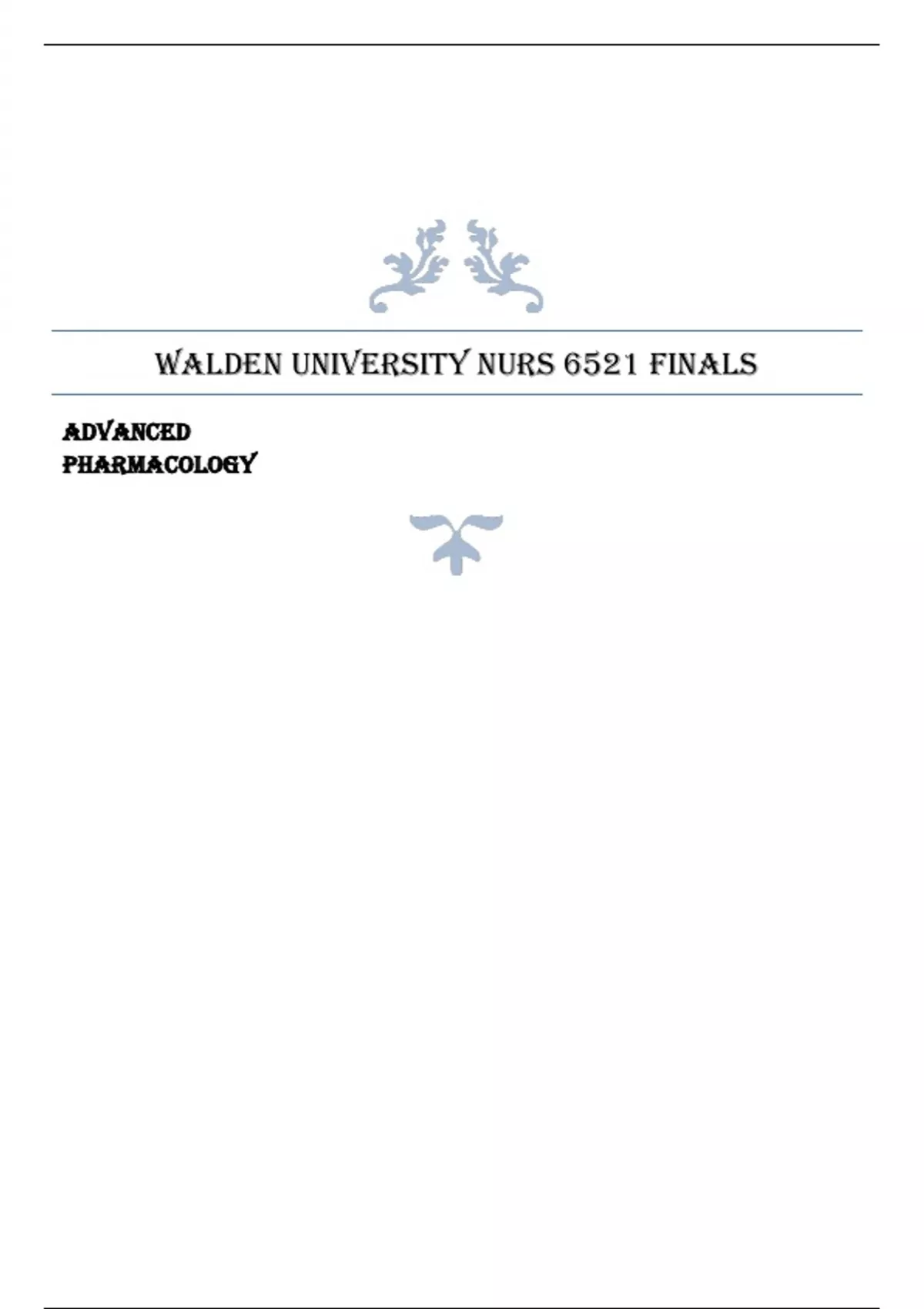 WALDEN UNIVERSITY NURS 6521 FINALS ADVANCED PHARMACOLOGY Exam Elaborations Questions with Answers Graded A Latest Verified Review 2024 Practice Questions and Answers for Exam Preparation, 100% Correct with Explanations, Highly Recommended, Download to Sco