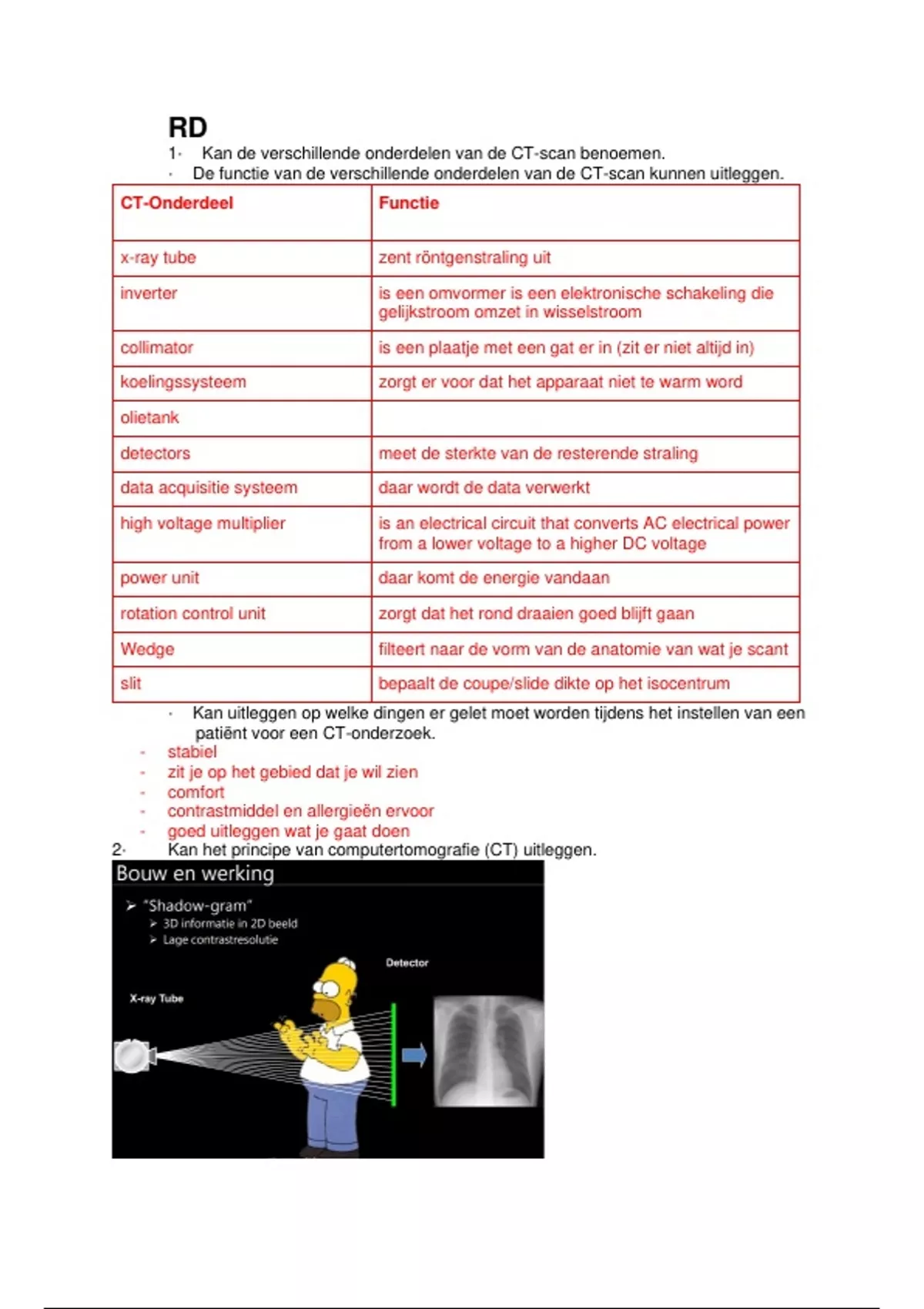 · De functie van de verschillende onderdelen van de CT-scan kunnen uitleggen.